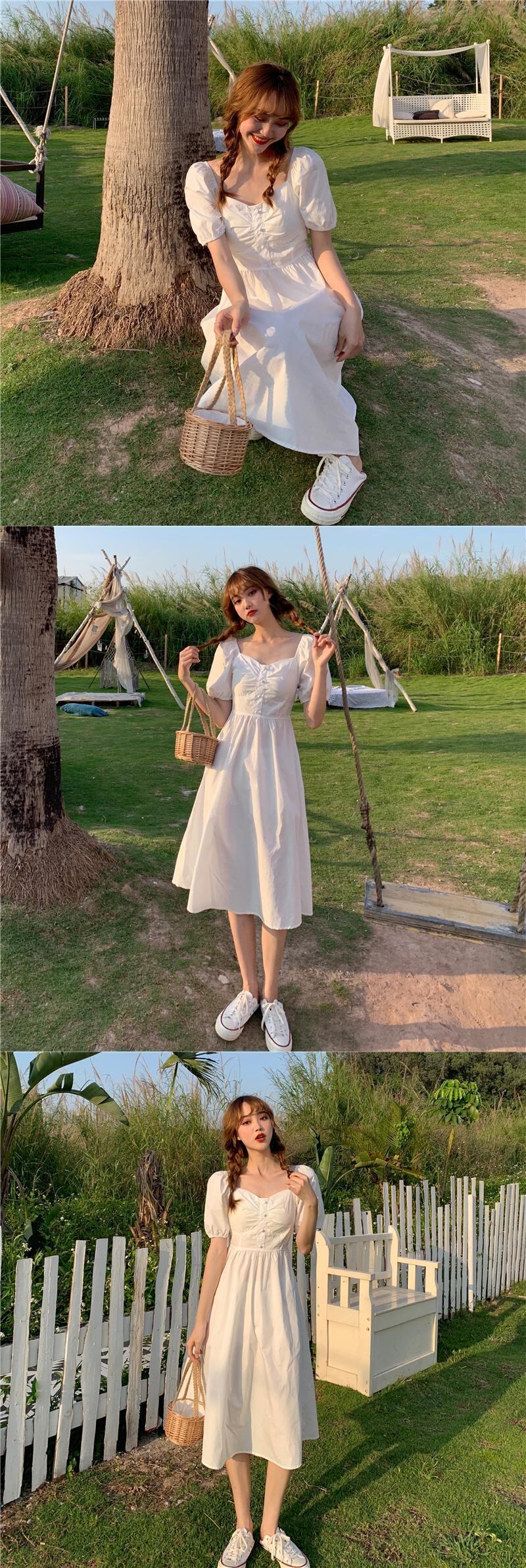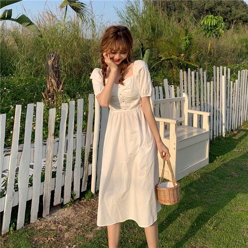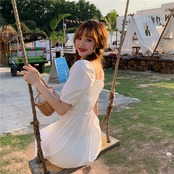 夏服薄手スリーブホワイトスリムワンピース 夏物 スカート フラワーデザイン ウエスト Marchs50649042510