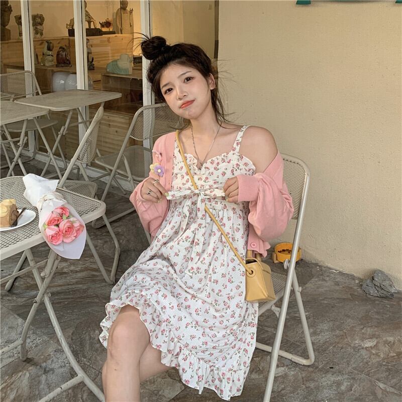 ショートフローラルワンピースレディースリボンルーズ夏服 夏物 花柄 Marchs88227049844