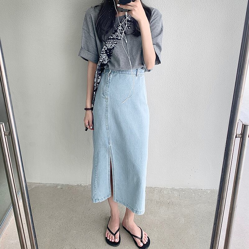 スカート 夏服韓国ファッションAラインハイウェストウェストブルースリム 夏物 スタイル ウエスト ミドル丈 Marchs30463212487