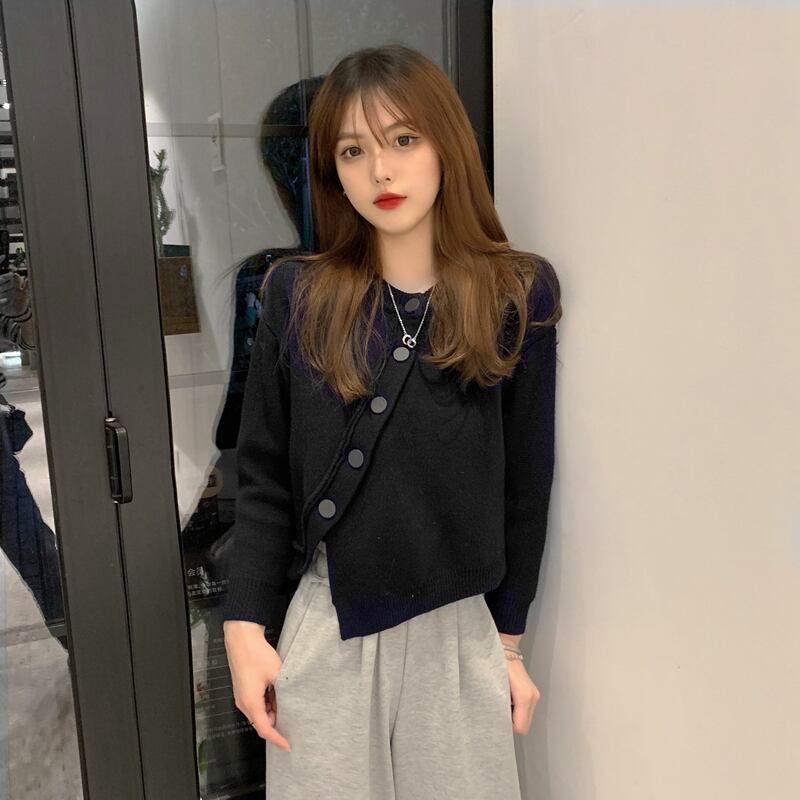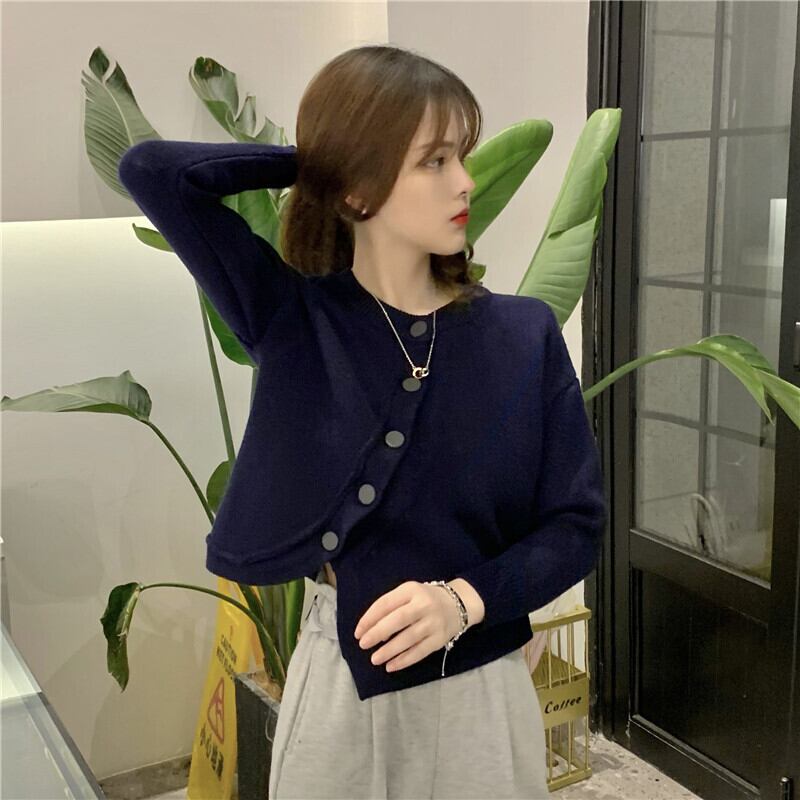 秋物ルーズトップス カラーカーディガンショートセーター ジャケット レディース オータム ピュア Marchs77164330683