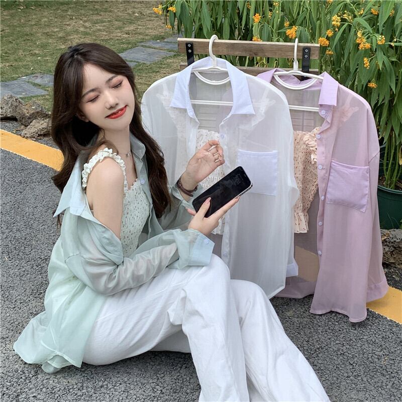 シャツ 夏服薄手カーディガンジャケット ロング ブラウス 夏物 長袖 Marchs53538622398