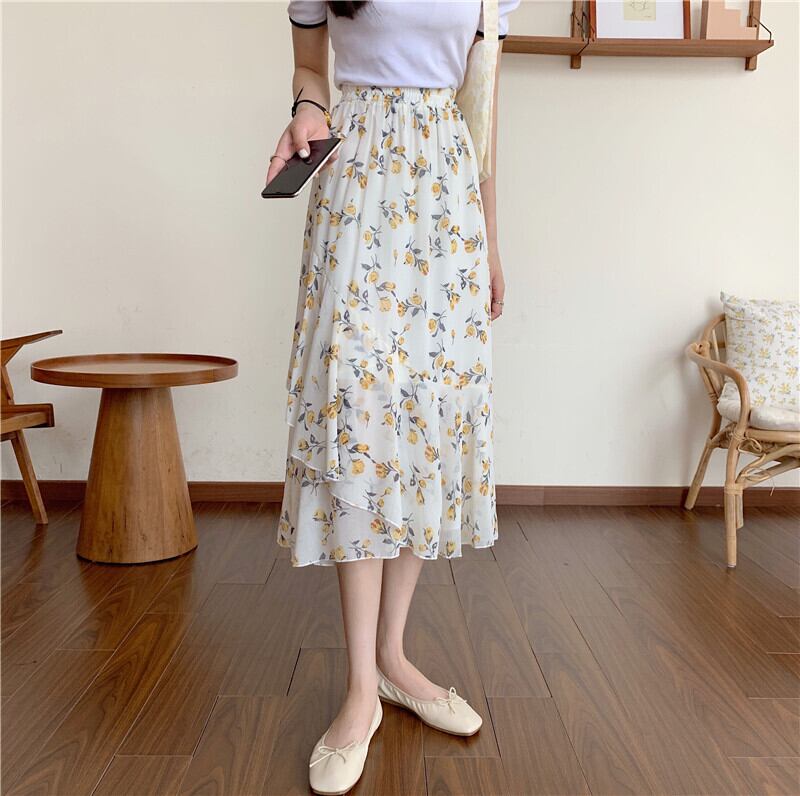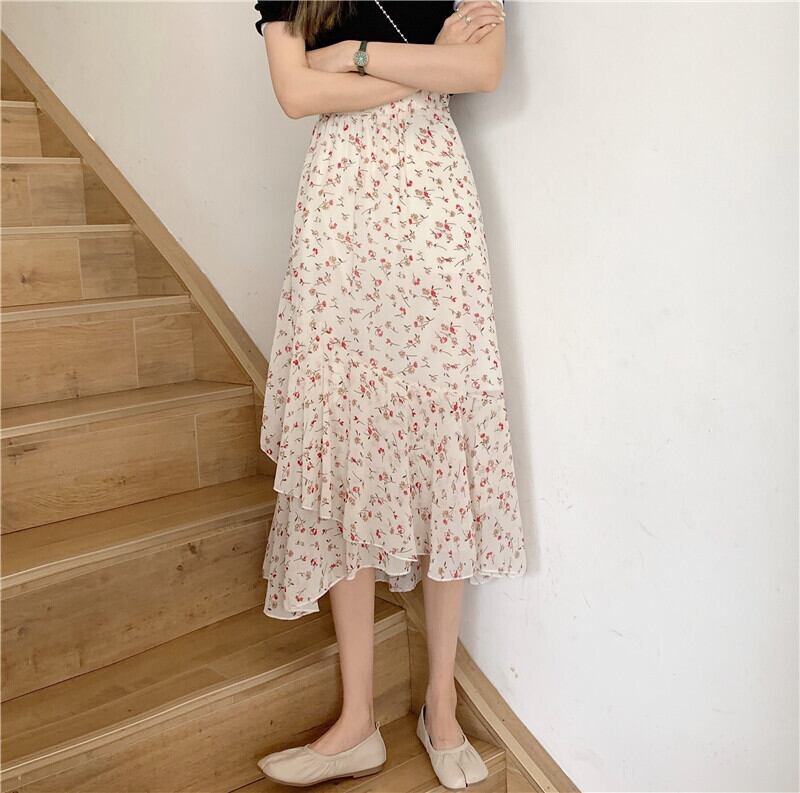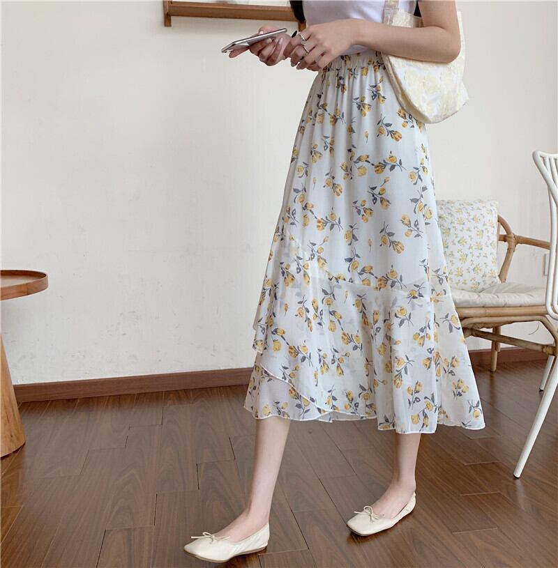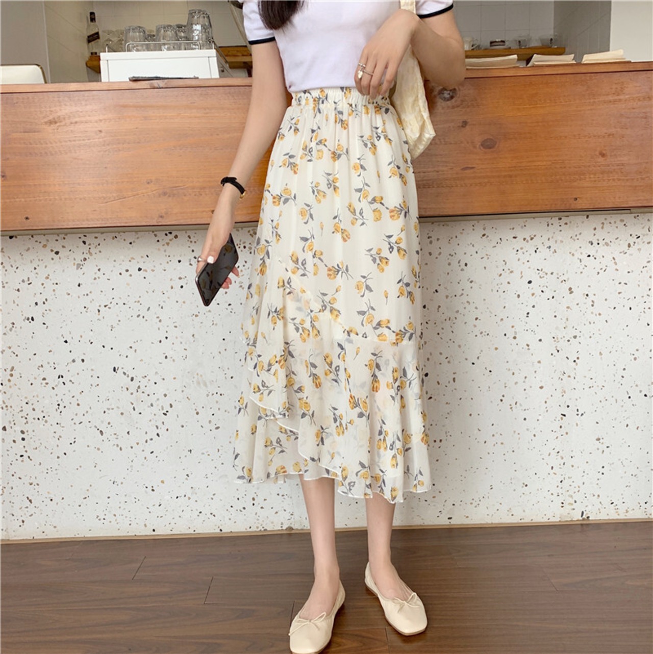 スカート フローラルレディース夏服薄手Aラインシフォン 夏物 花柄 ミドル丈 Marchs86533618262