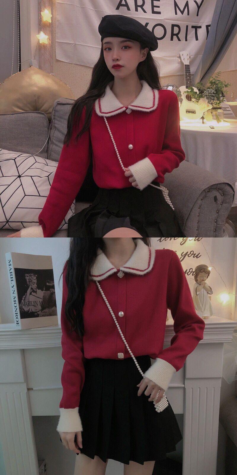 ブラックニットゆったりシャツ セーター レディーススプリングスタイルカラーブラウス 春物 Marchs26068157871
