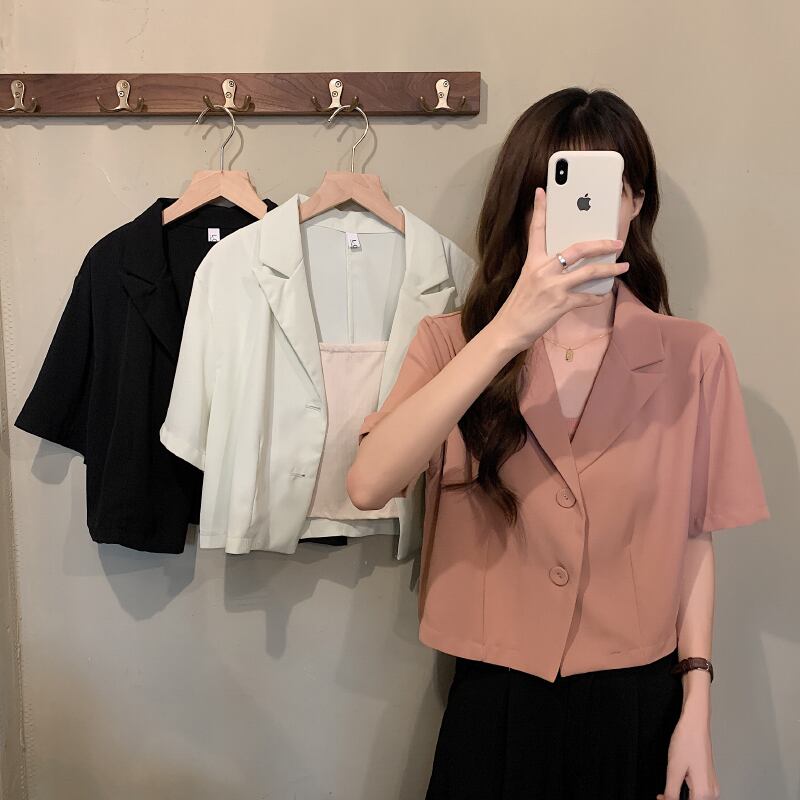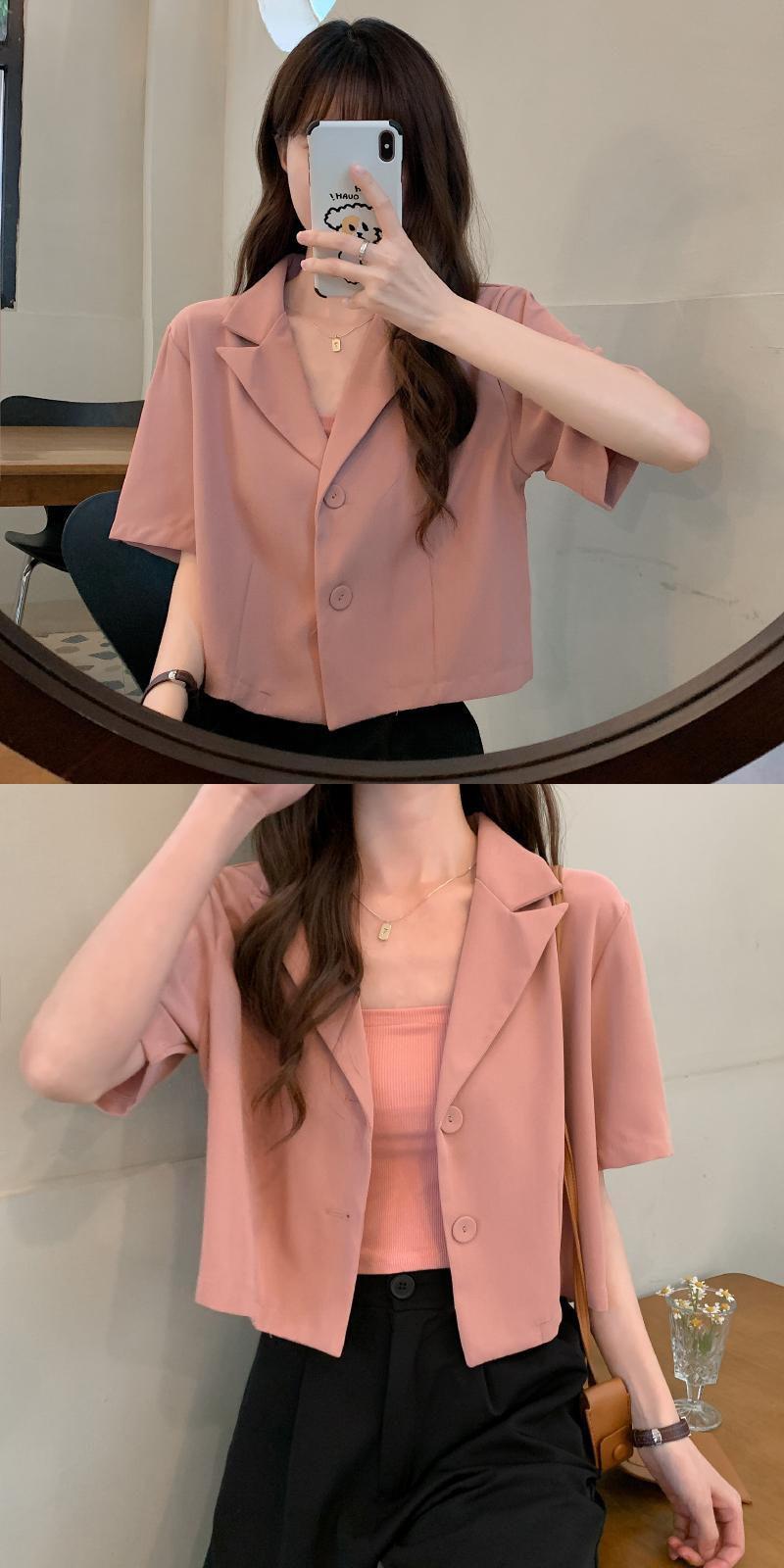ショートジャケット レディース夏服ルーズ韓国ファッションカジュアルハイウェストウェストトップス 夏物 ウエスト Marchs7532341697