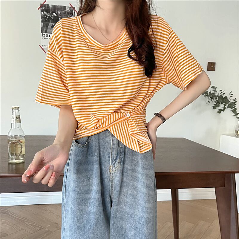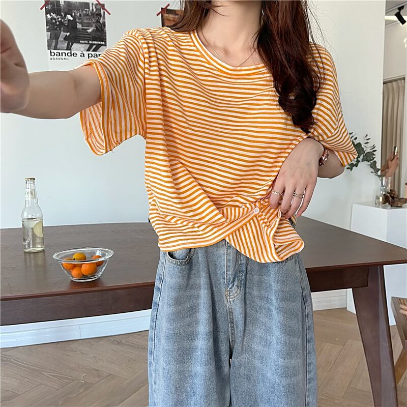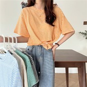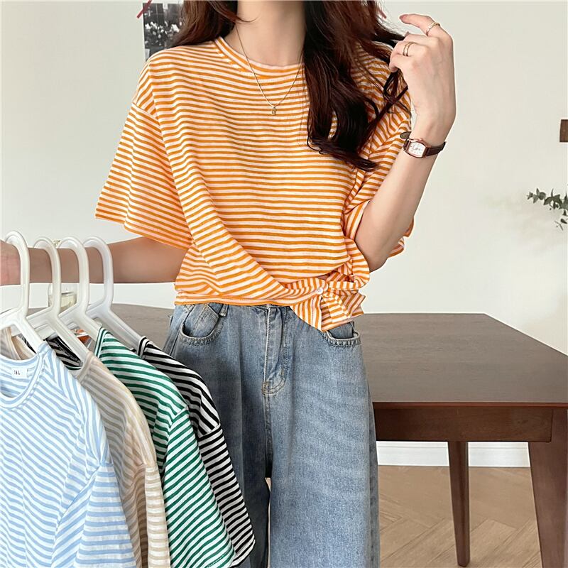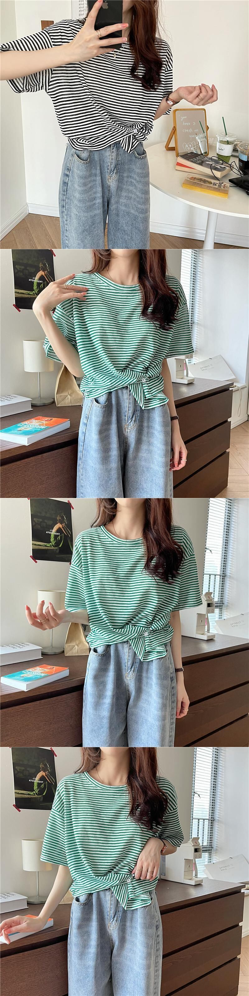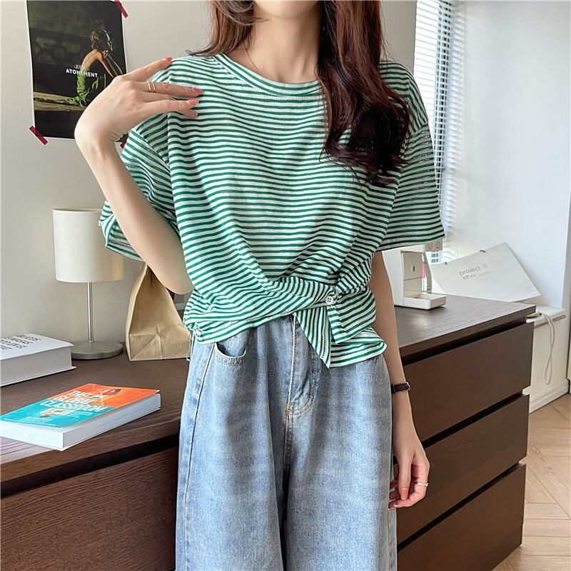 グリーンストライプショートTシャツレディース夏服スタイルクロップトップ トップス 夏物 Marchs74973369178