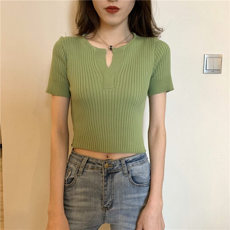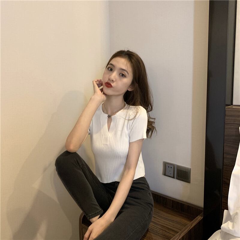 夏服スタイルウェストショートスリムニット半袖スリーブTシャツトップス ハーフスリーブ 夏物 ウエスト Marchs59485315574