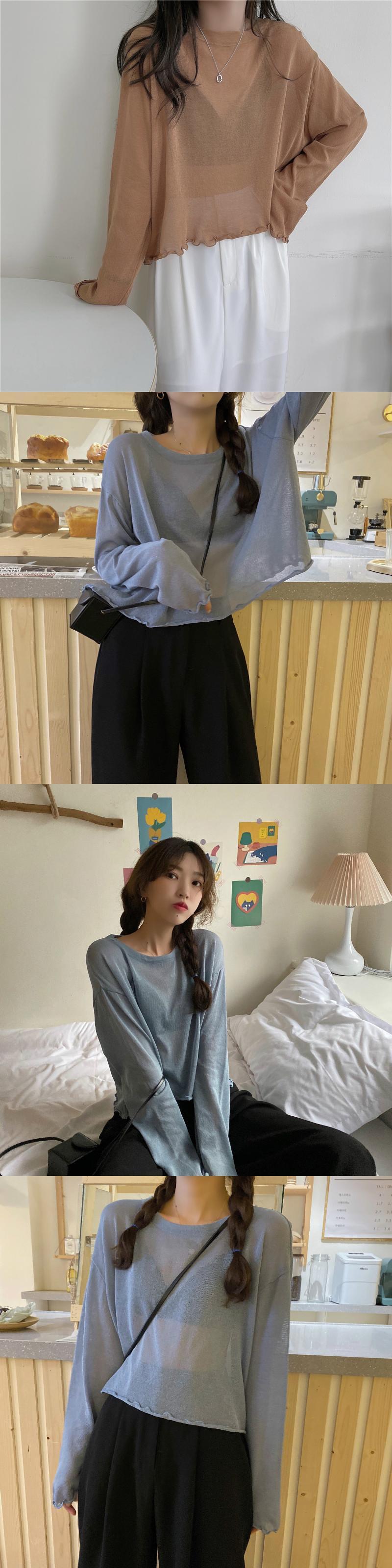 韓国ファッションルーズニット薄手レディース夏服ストラップ ブラウス シャツ ロング 夏物 シルク スタイル 長袖 Marchs52320987120