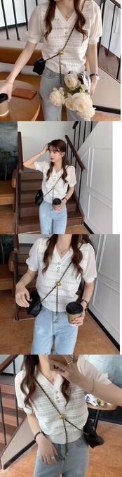 スタンダードショートスリーブVネックニットTシャツトップス レディース レトロ シルク Marchs33781072141