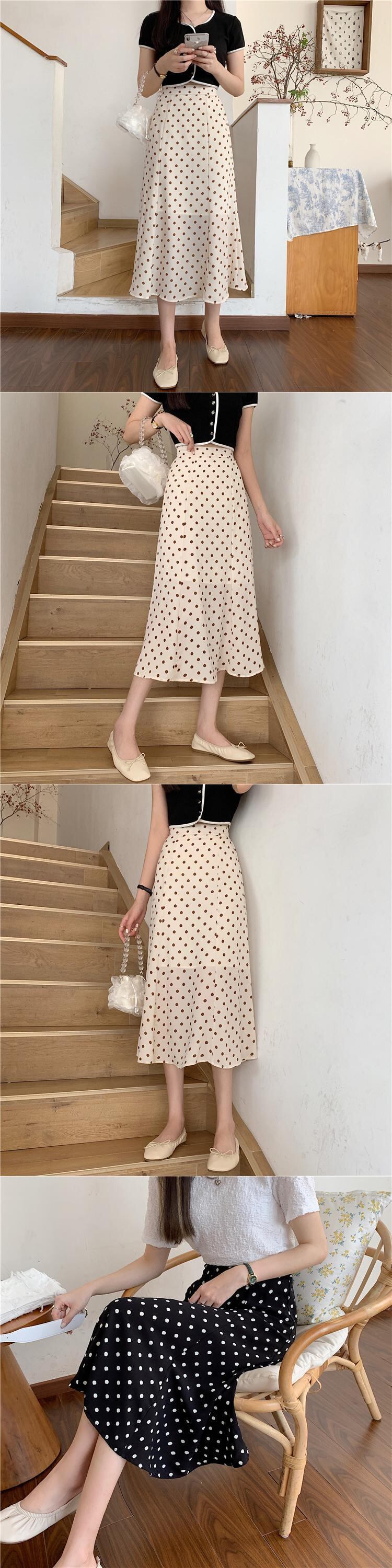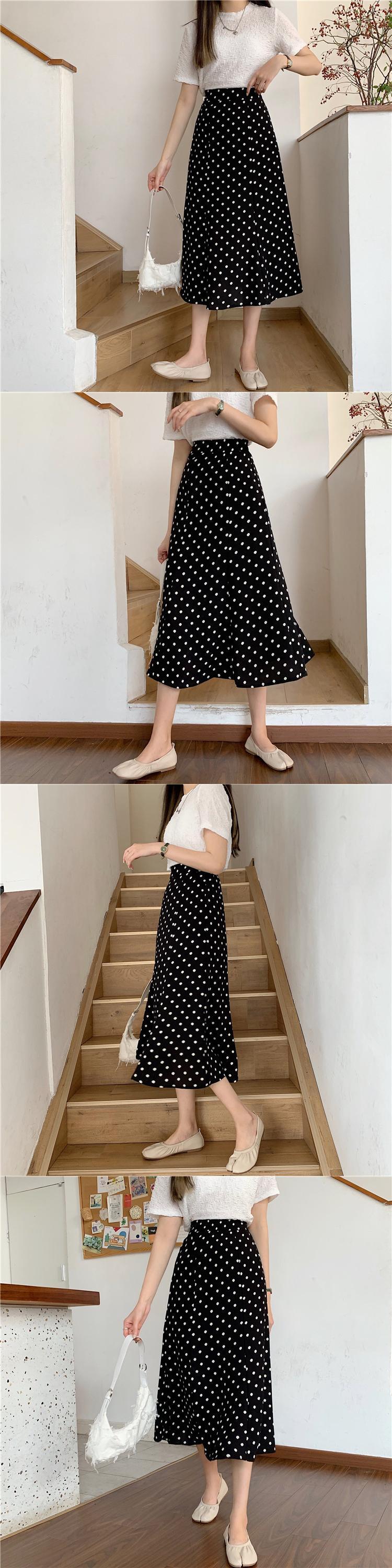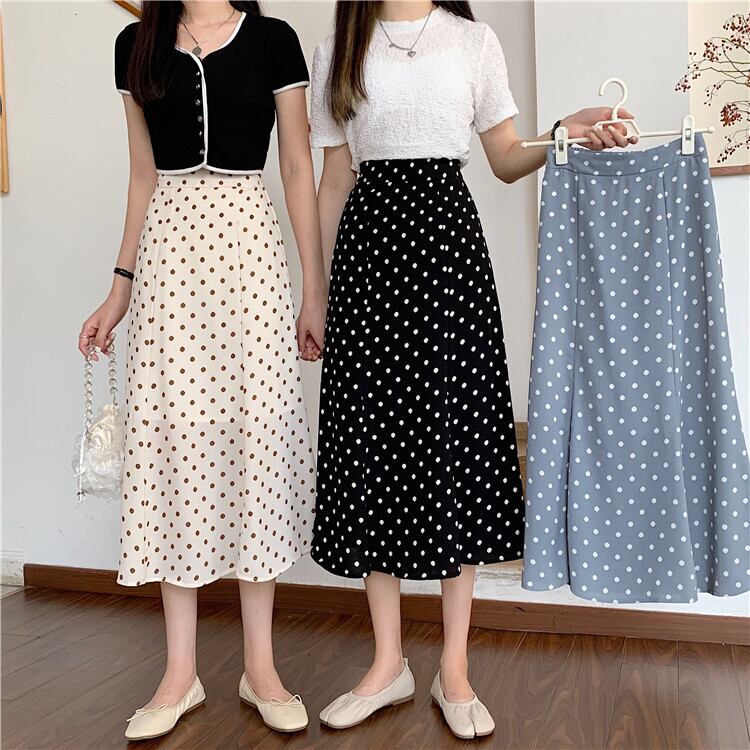 水玉スタンダードレディーススプリング夏服スタイル薄手ハイウェストAライン レトロ 春物 夏物 スカート ウエスト ミドル丈 Marchs65829954430