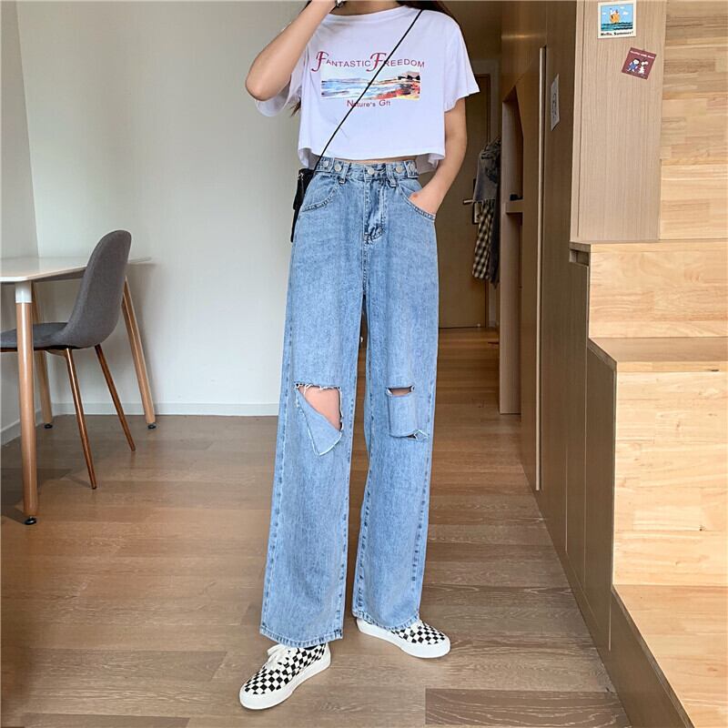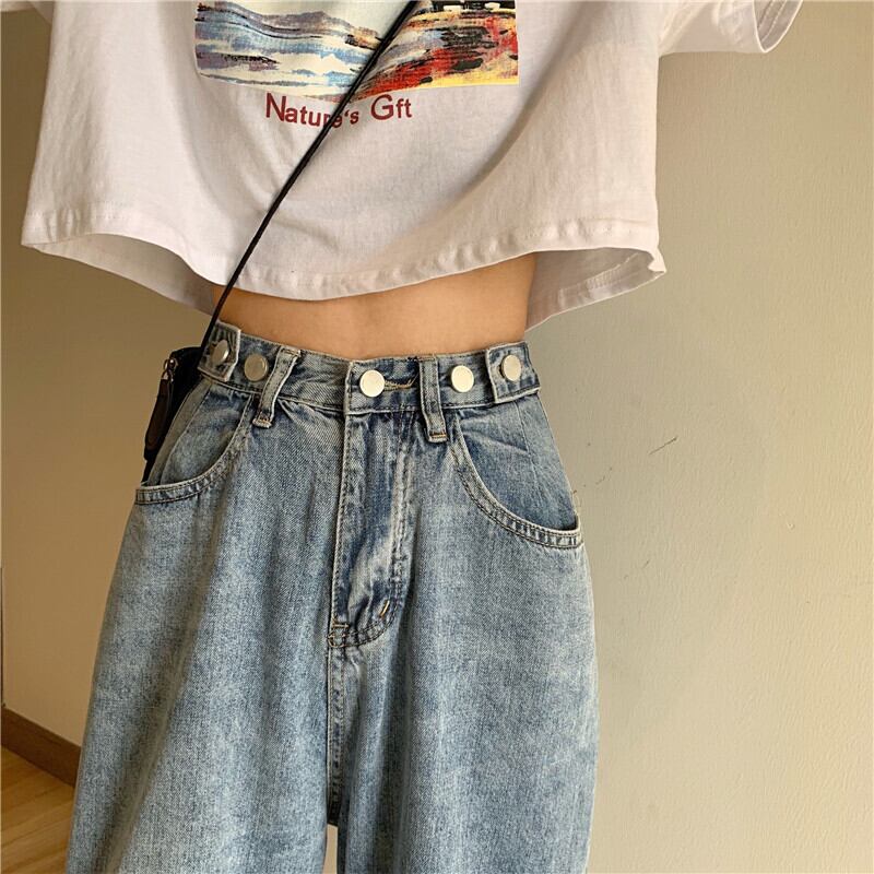 ジーンズ レディーストレンドスプリング夏服ルーズハイウェストウェストワイドレッグクロップド 春物 夏物 ワイドパンツ ウエスト Marchs78601411572