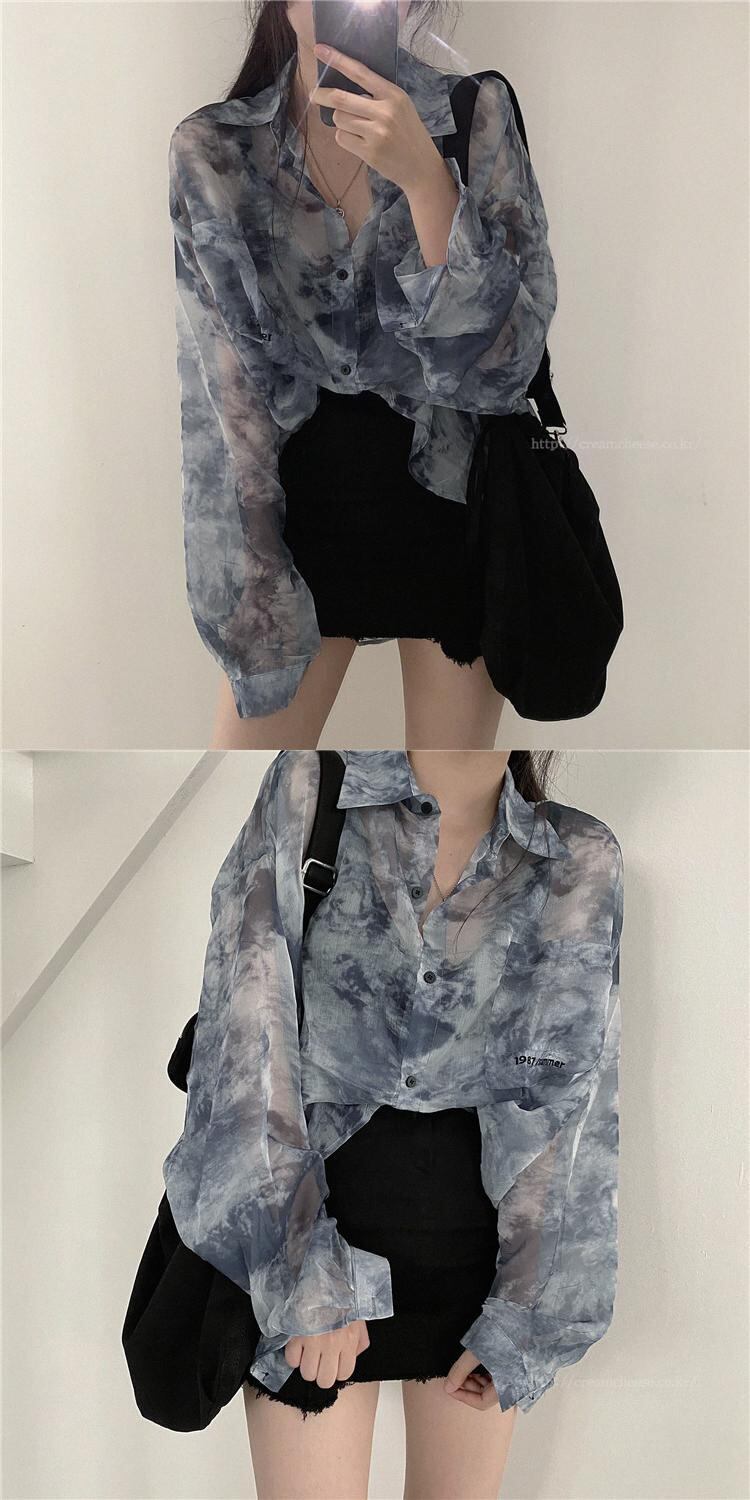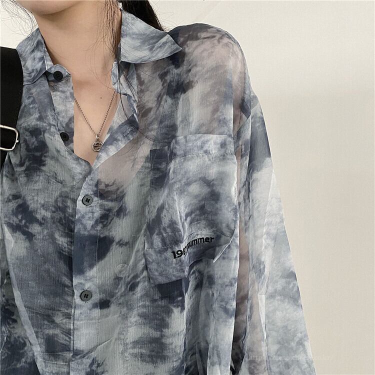 スプリング夏服シャツ レディースルーズシフォントップス ロング 春物 夏物 長袖 Marchs14870002134