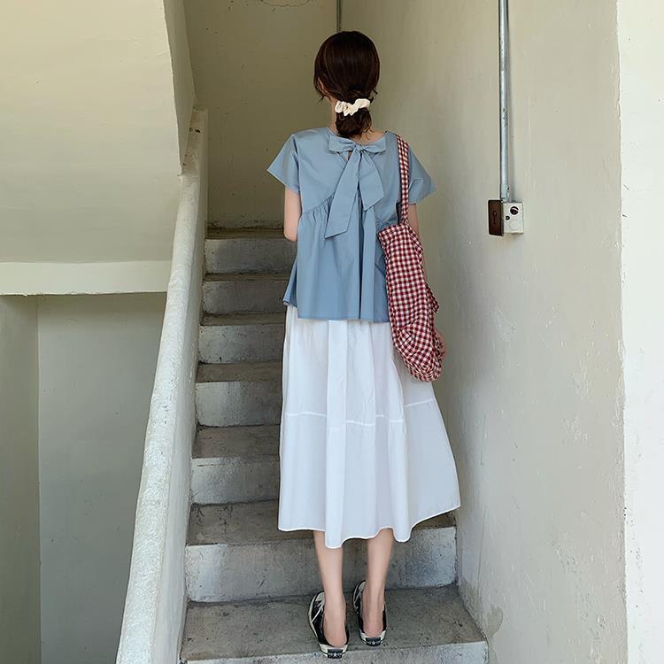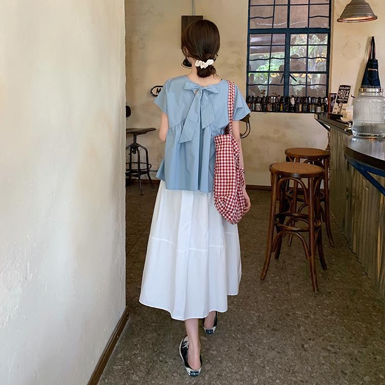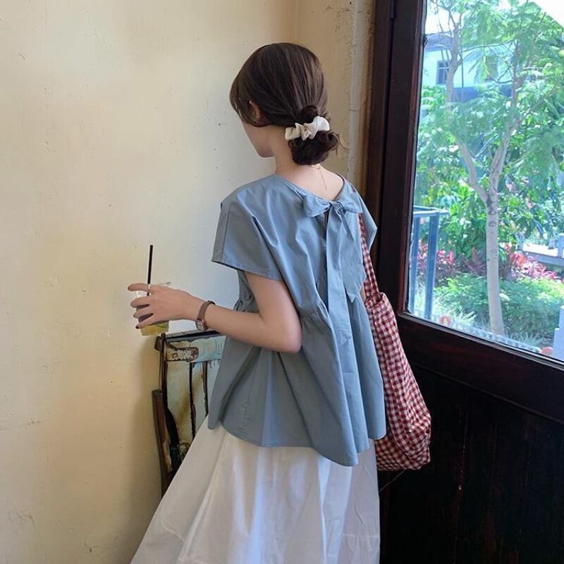 バックリボンブルーシャツ レディーススタイルトップス Marchs45142194258