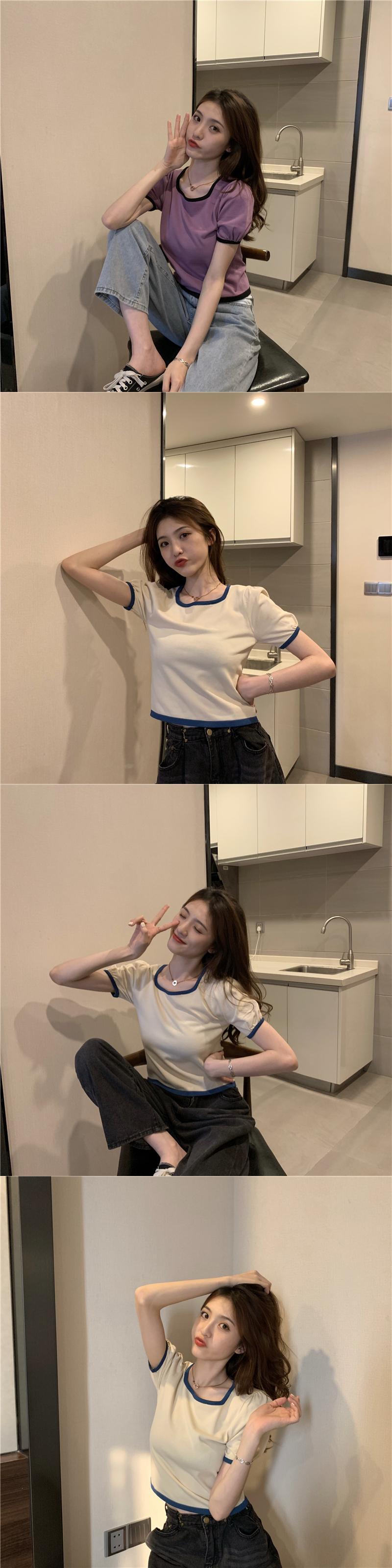 ショートTシャツレディースニットカラーハイウェストウェストトップス スクウェア ウエスト Marchs14552371750