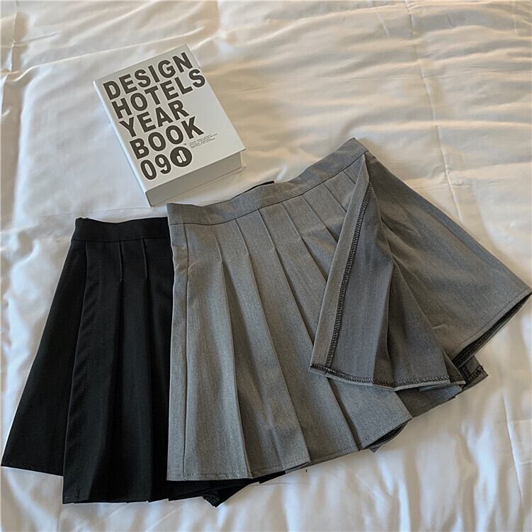 ブラックプリーツスカート ハイウェストAライン薄手夏服 夏物 ウエスト Marchs75933539909