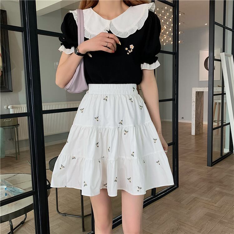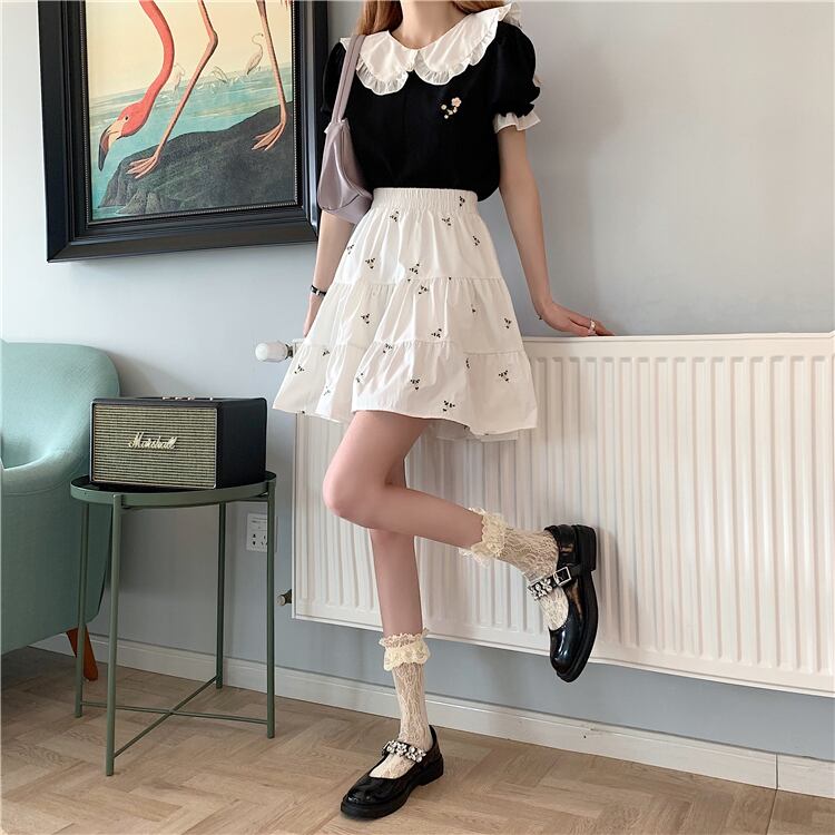 フローラルスカート レディース夏服ハイウェストウェストAライン薄手ショート ふわふわ 夏物 花柄 ウエスト Marchs74094317709