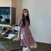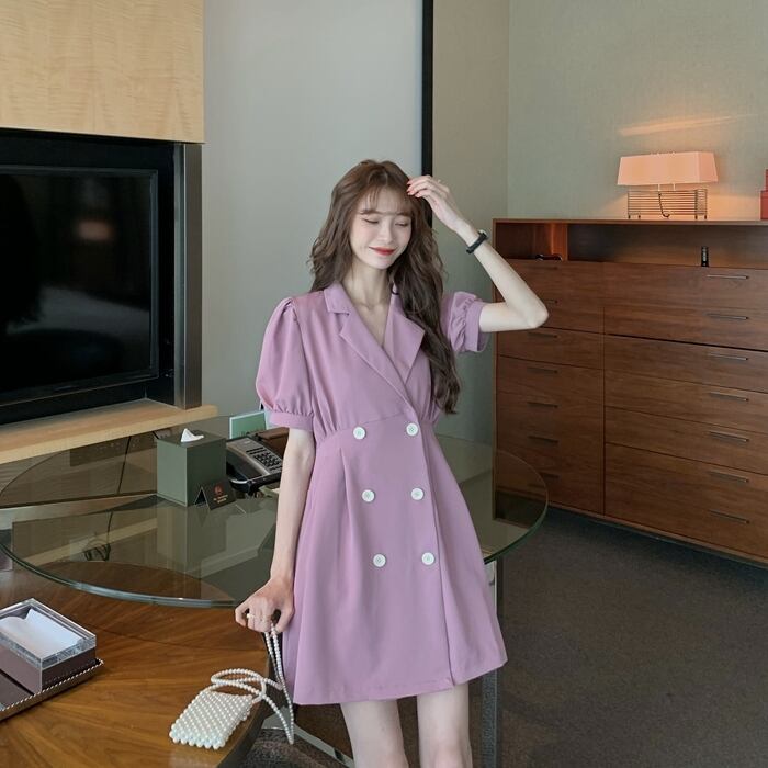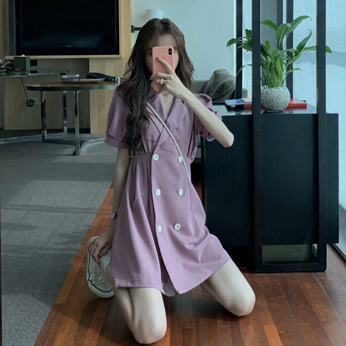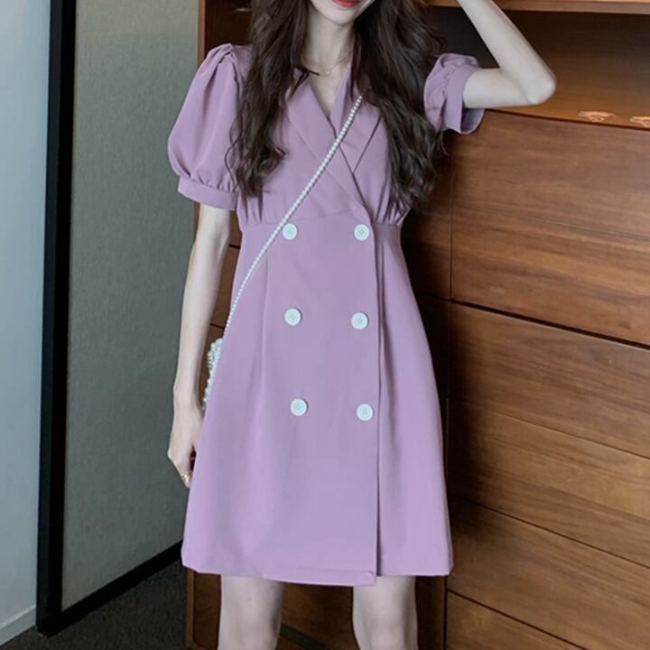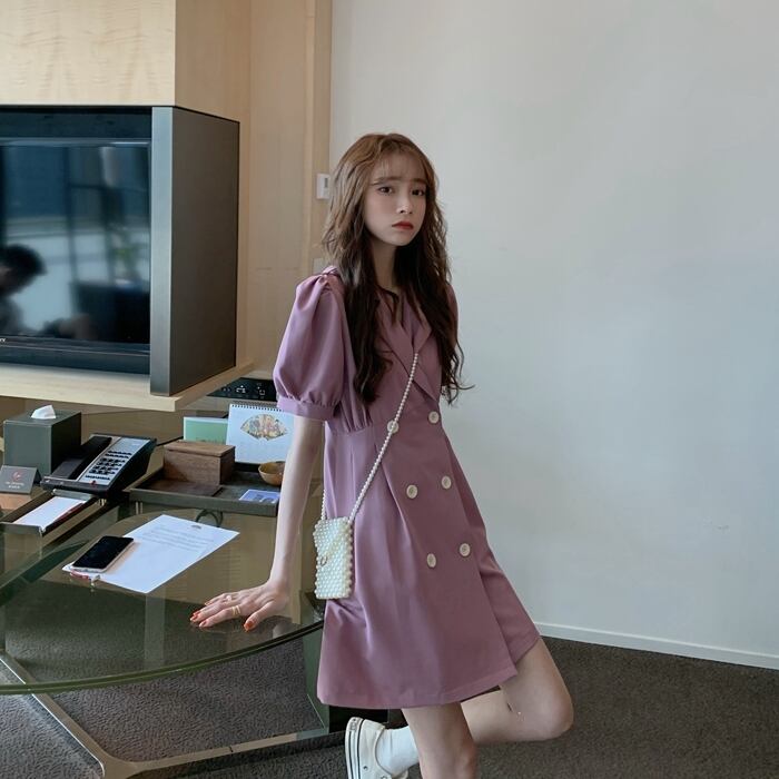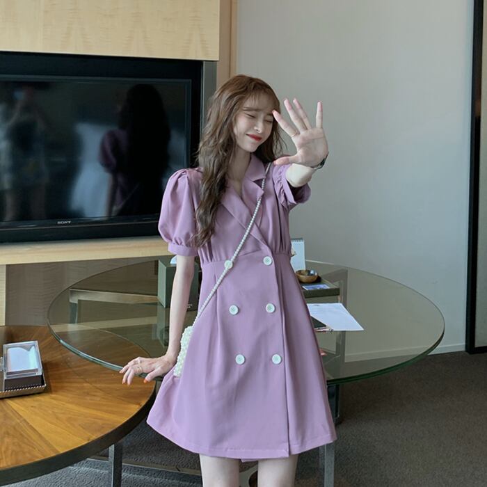 ワンピース夏服スタイルスタンダードスカート レディース レトロ 夏物 パープル Marchs38168287021