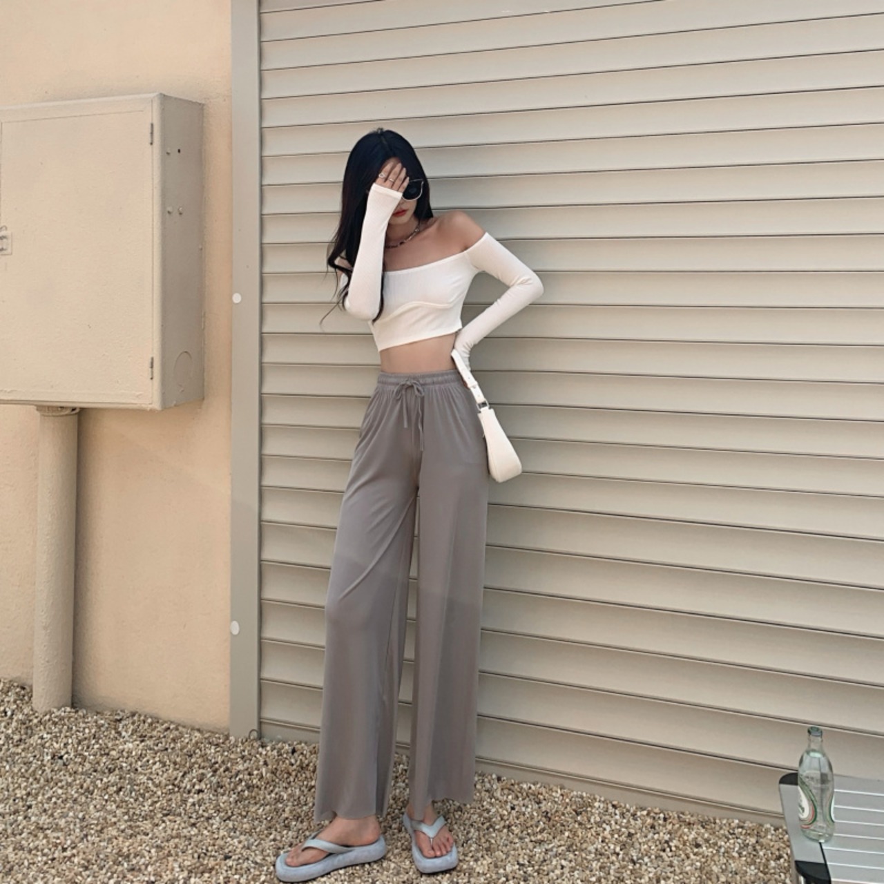 ブラックパンツ 夏服ハイウェストウェストルーズスリムカジュアル 夏物 シルク ウエスト Marchs62854865635