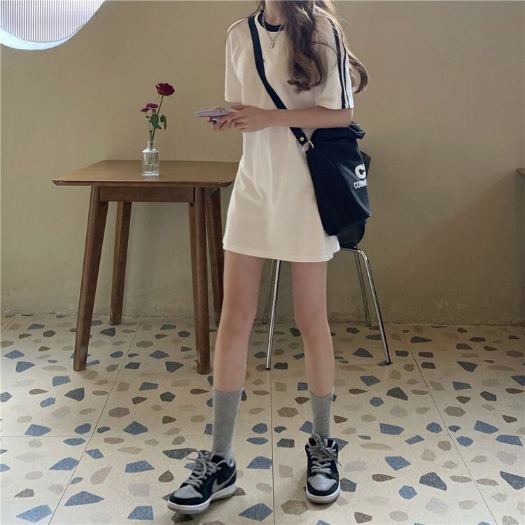 ホワイトロングTシャツ夏服ルーズ コットン 夏物 Marchs15379408052