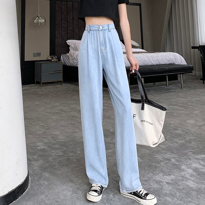 ジーンズ ストレッチウェスト夏服薄手ワイドレッグパンツ エラスティック 伸縮 夏物 ワイドパンツ シルク ウエスト Marchs38036006295