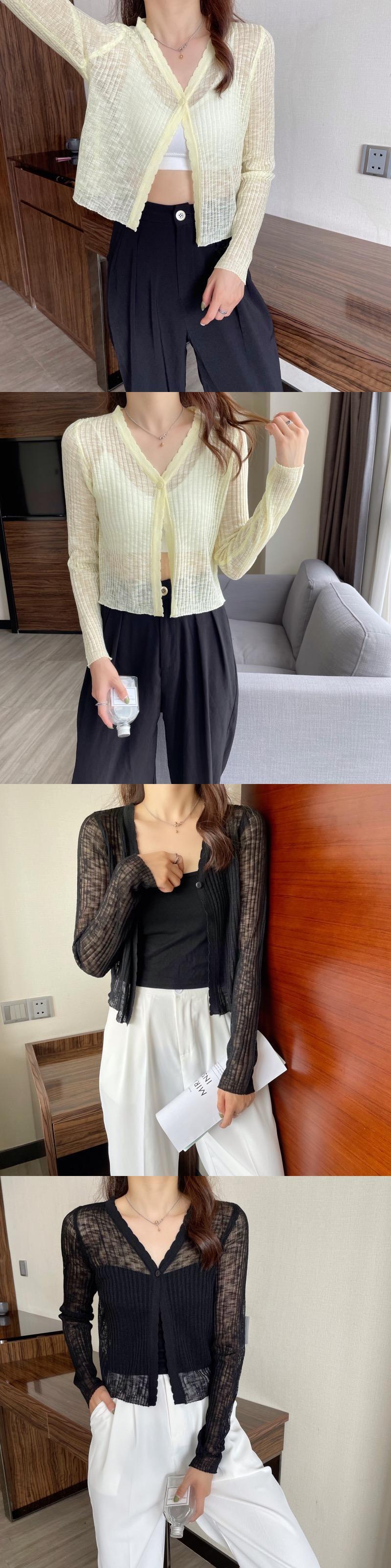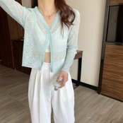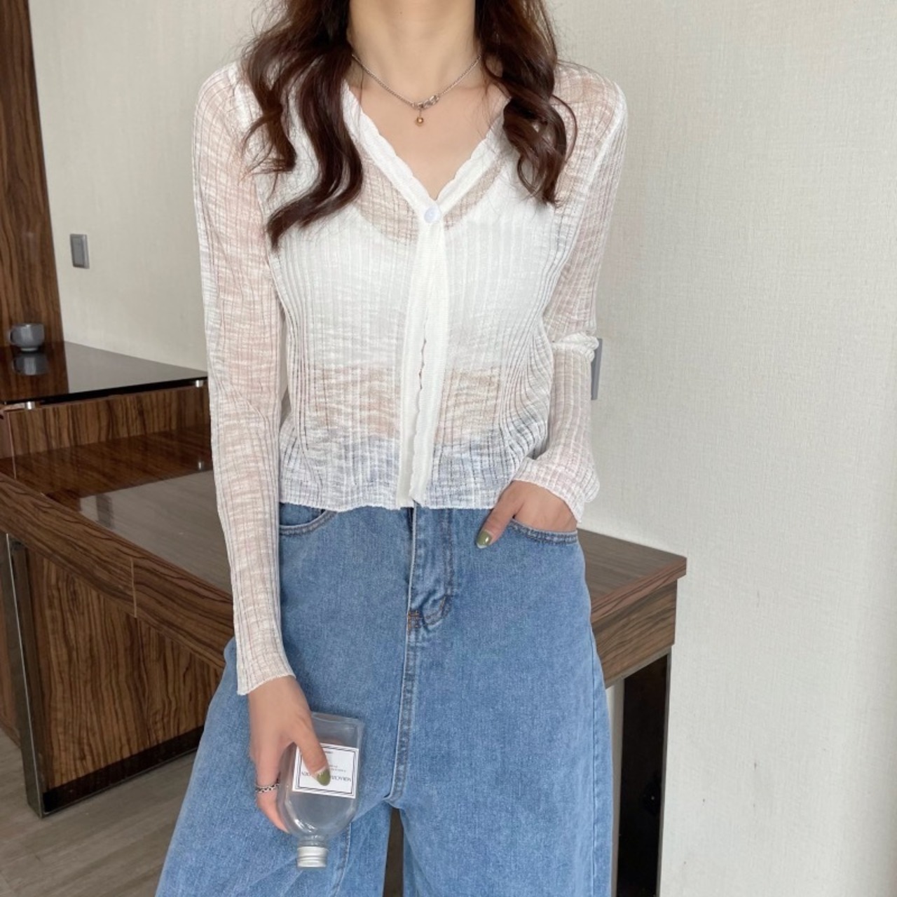 夏服薄手ブラウス ショールホワイトニットカーディガンショートコート Vネックトップス 夏物 シルク Marchs51696008831