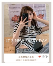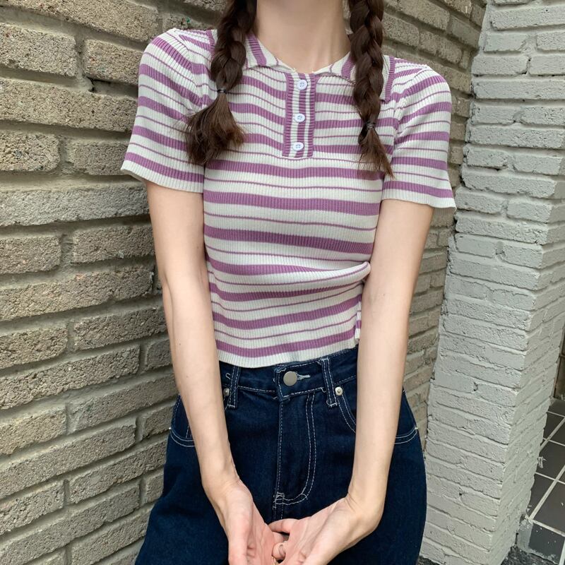 カラーストライプニットショート夏服スリム薄手Tシャツ 夏物 シルク Marchs21517287961