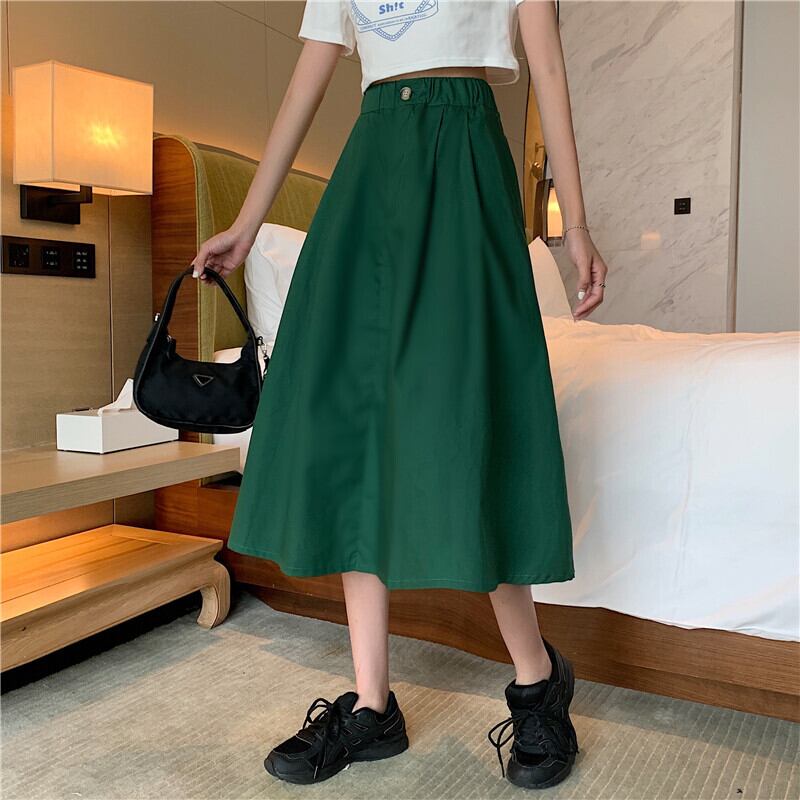 グリーンスカート 夏服薄手ルーズAライン 夏物 ミドル丈 Marchs17335548012