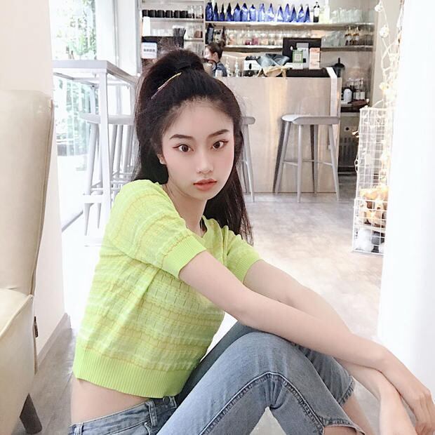 ショートニットセーター ラウンドネッククロップドTシャツレディーストップス Oネック シルク Marchs55982026977