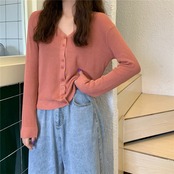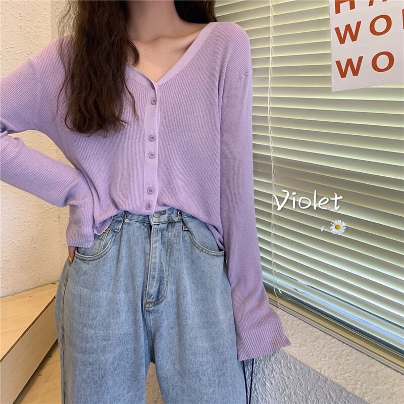 スプリングルーズVネックブラウス ジャケット 薄手セーター ニットカーディガンレディース 春物 シルク パープル Marchs20460063970
