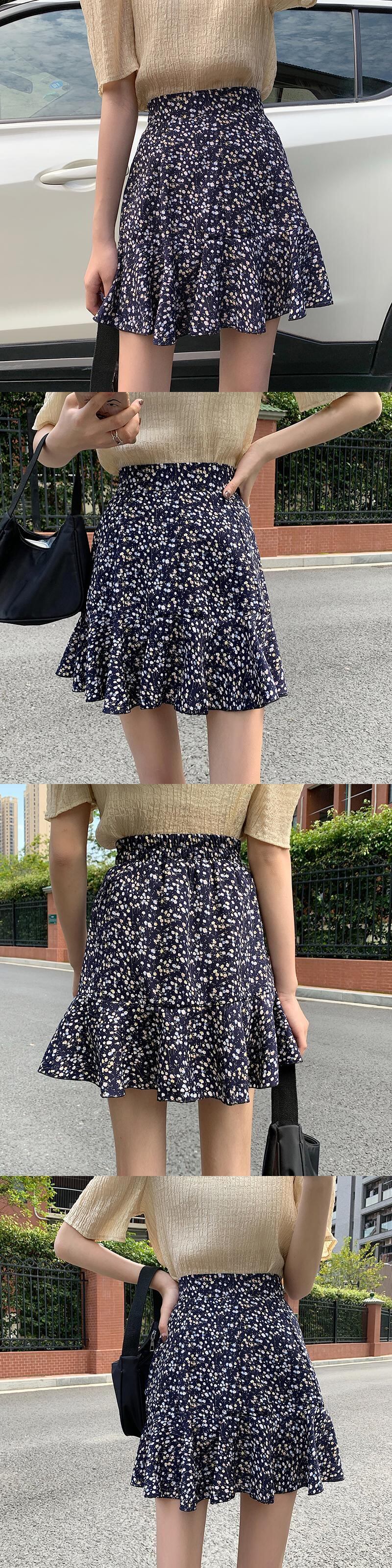 フローラルAラインスカート レディース夏服ハイウェストウェスト韓国ファッション薄手 夏物 花柄 スタイル ウエスト Marchs44890380321