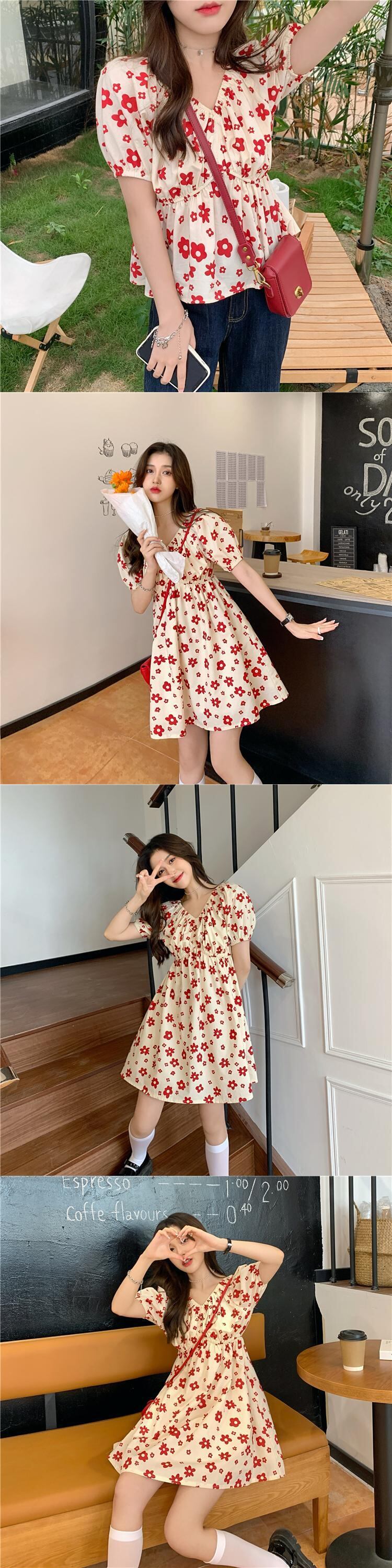 色:リトルレッドフラワートップ,小さな赤い花のドレス