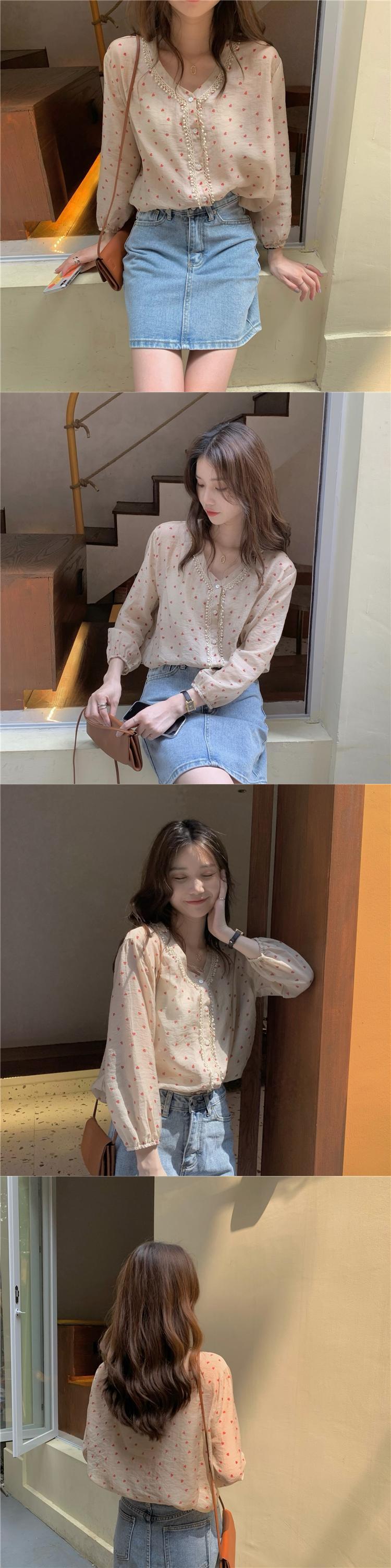 夏服フローラルVネックシフォンシャツ ロング 夏物 花柄 長袖 Marchs58921796094