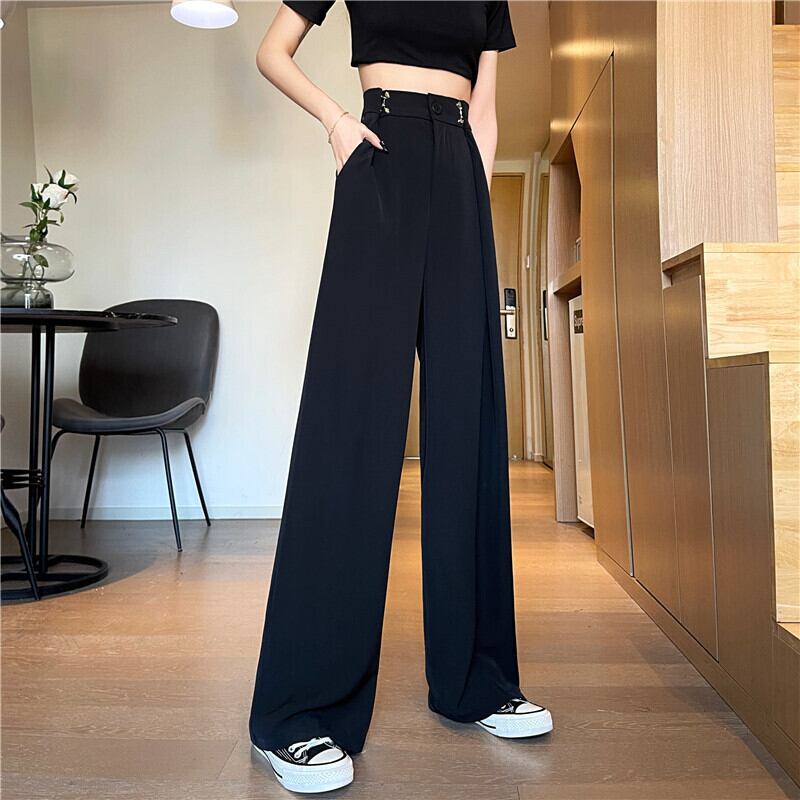 ブラックパンツ 夏服薄手カジュアルハイウェストウェストワイドレッグ 夏物 ワイドパンツ シルク ウエスト Marchs16278661155