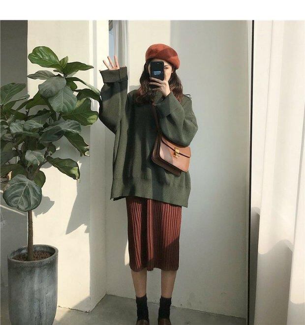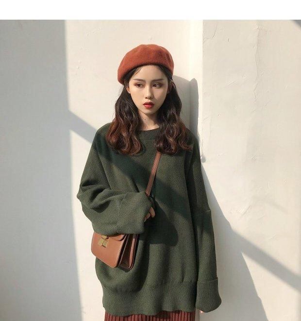 秋物韓国ファッションスタンダードルーズプルオーバー セーター トップス ロング レトロ オータム 長袖 Marchs57810568424