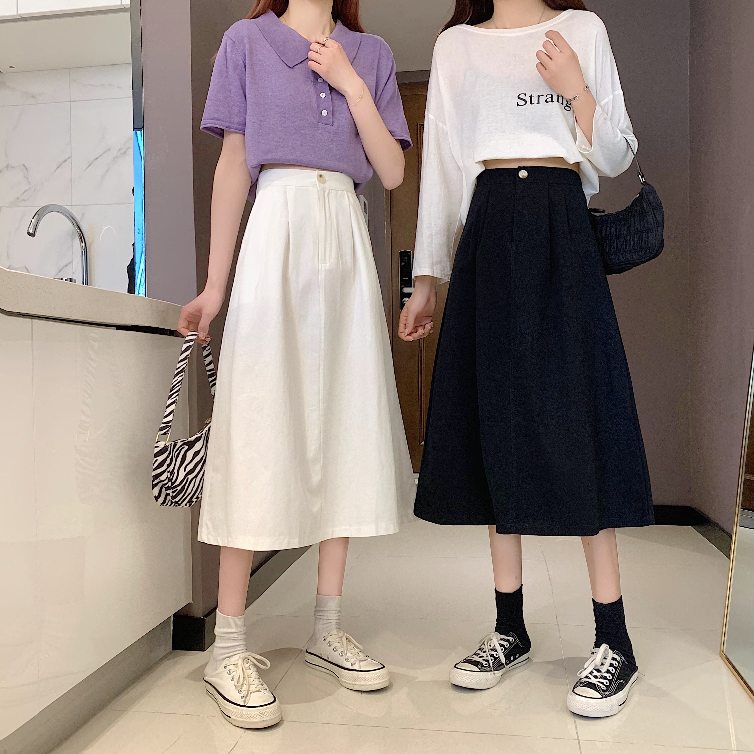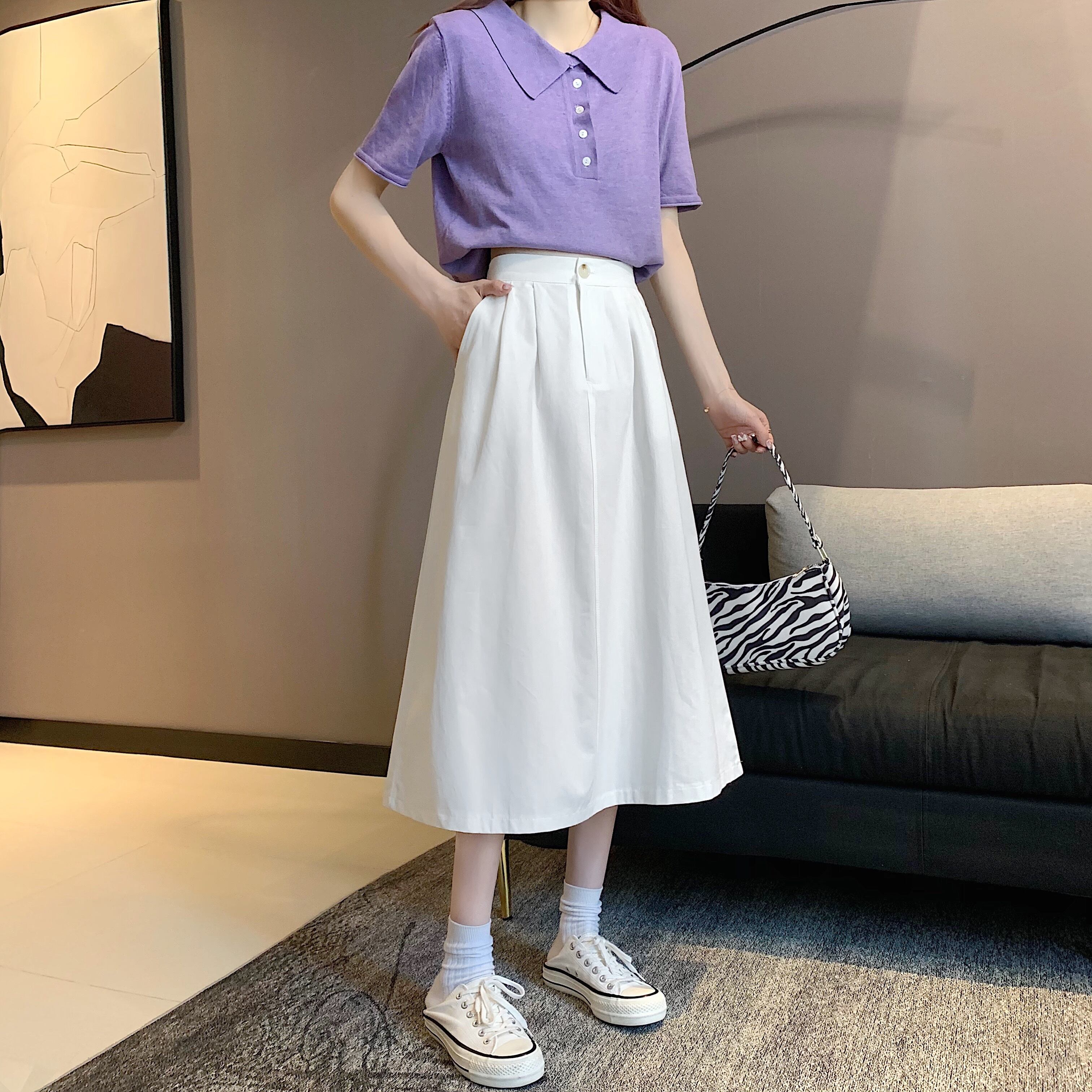 ホワイトスカート レディース夏服ハイウェストウェストAライン 夏物 ウエスト ミドル丈 Marchs76209199599