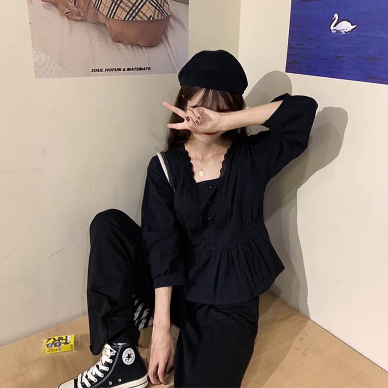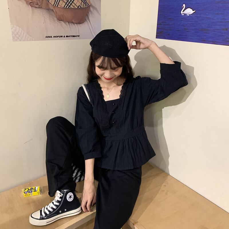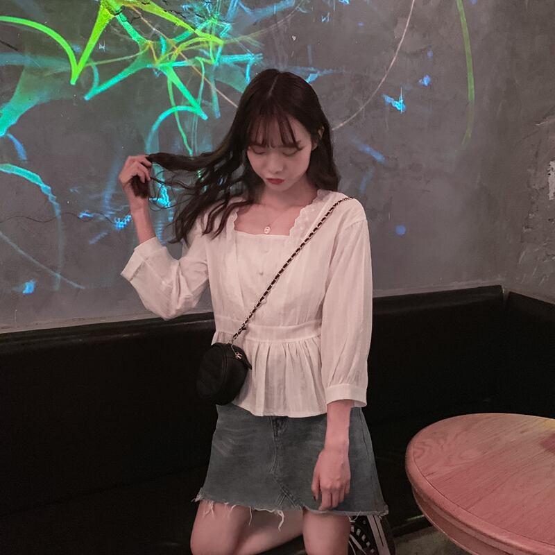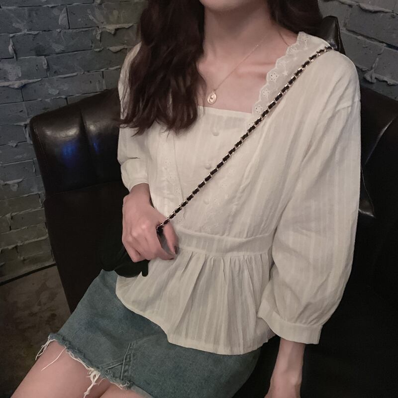 カラースタンダードスタイルトップス ショートシャツ レディース レトロ スクウェア Marchs23139649426
