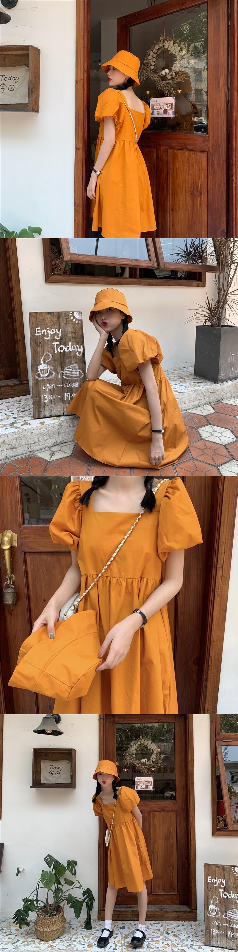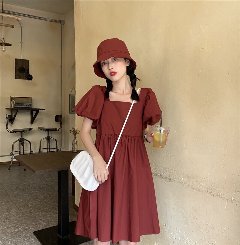 レッドスリーブワンピース夏服Aライン薄手 大人ガーリー スウィート キュート カジュアル 夏物 フラワーデザイン スクウェア Marchs76000332652
