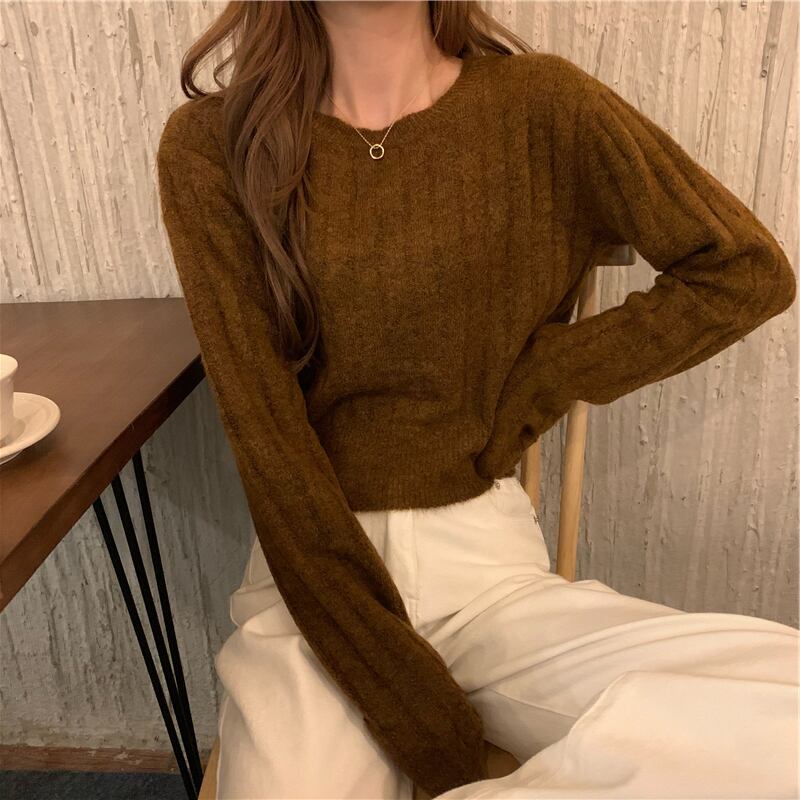 スプリング韓国ファッションルーズセーター ショートラウンドネックプルオーバー レディーストレンド 春物 Oネック スタイル Marchs28792698734