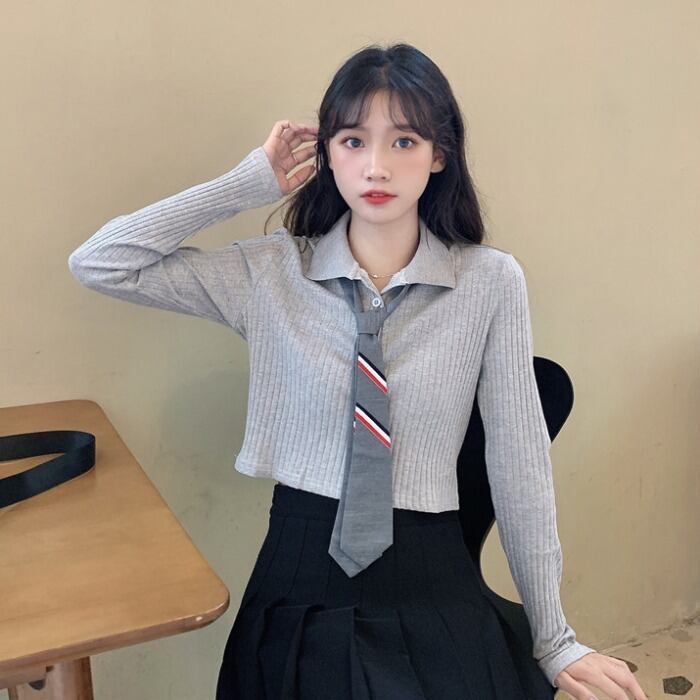 スタイルシャツ Tシャツレディーススプリング秋物クロップドクロップトップ トップス ハイウェストウェストパンツ ロング 大人ガーリー スウィート キュート カジュアル 春物 オータム 長袖 ウエスト Marchs48434276970