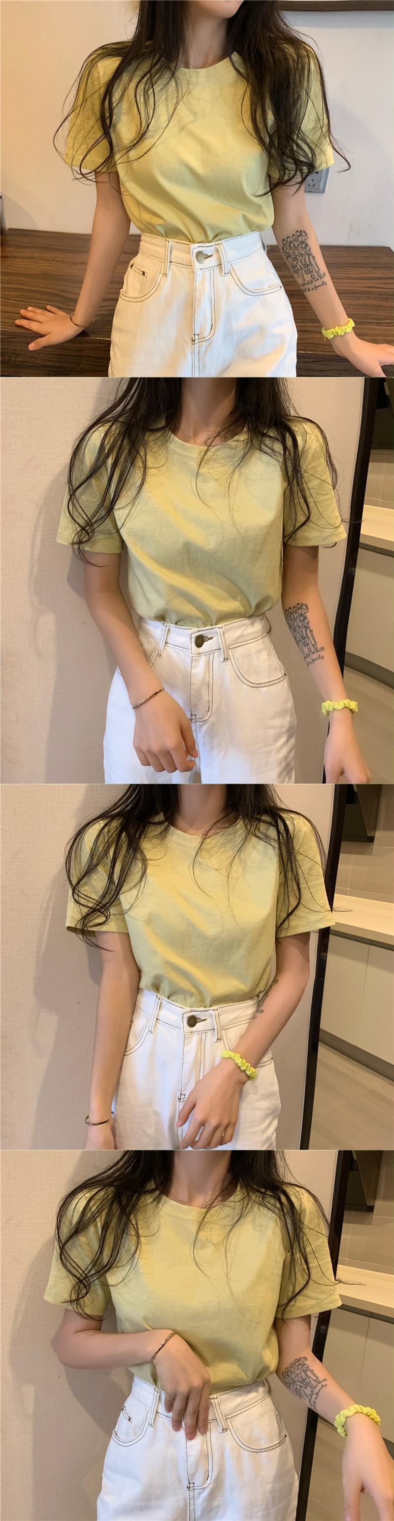 カラーTシャツシャツ レディーストップス ルーズラウンドネックゆったりショート コットン 半袖 ハーフスリーブ Oネック Marchs22494282298
