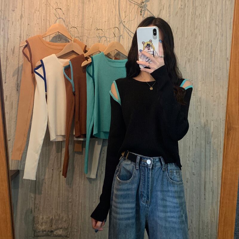 韓国ファッションスタイルスリムカラーニットゆったりシャツ レディーススプリングトップス ロング 春物 長袖 Marchs51322038650