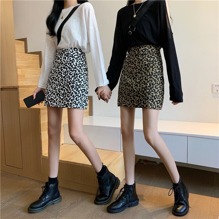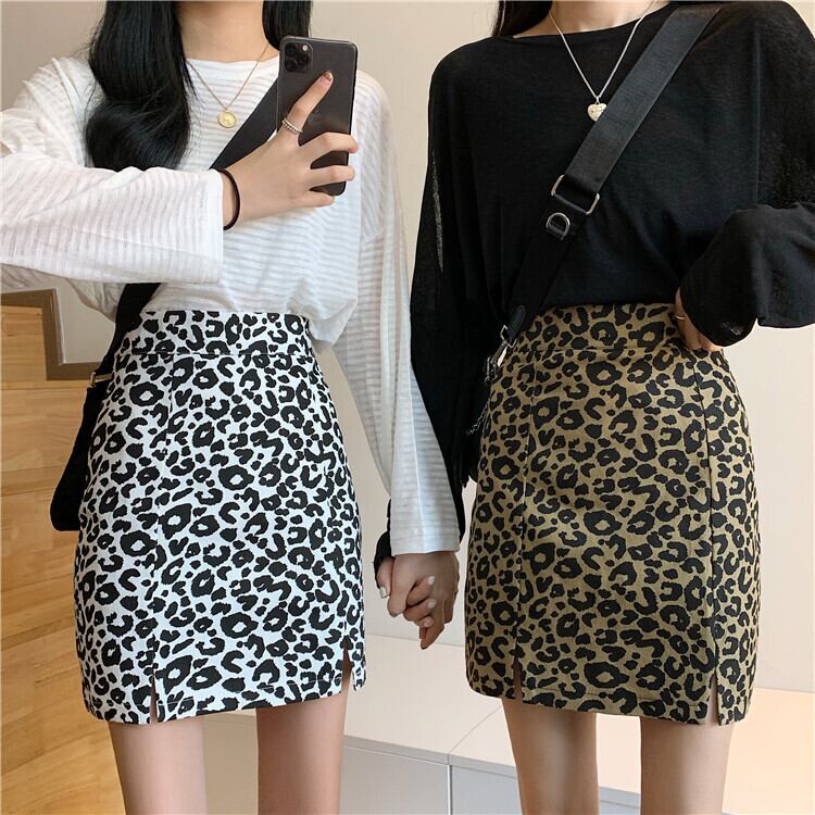 トレンドレオパードプリント柄スカート スプリングレディースショートAラインハイウェストウェスト 春物 ウエスト Marchs13593819239