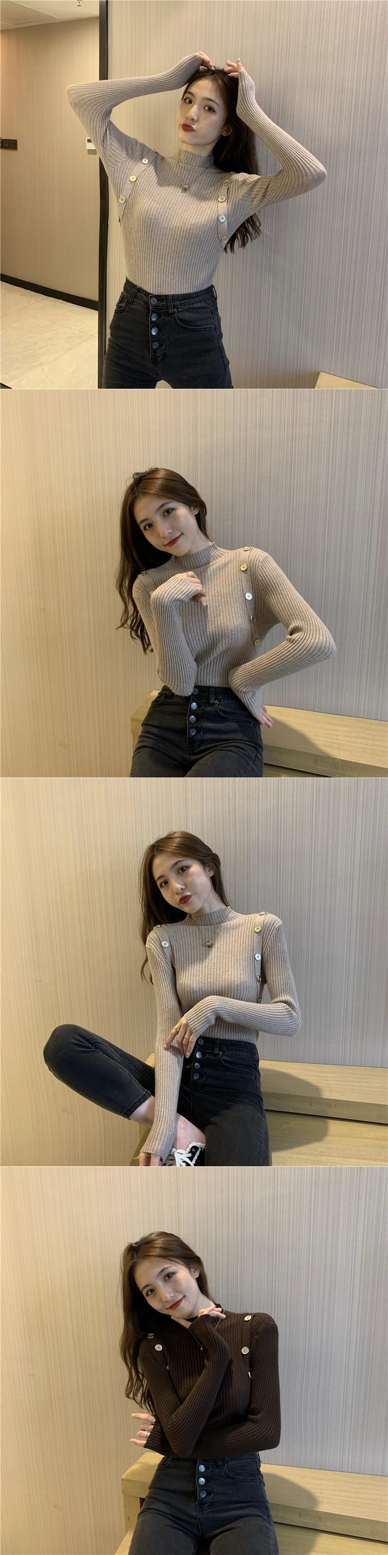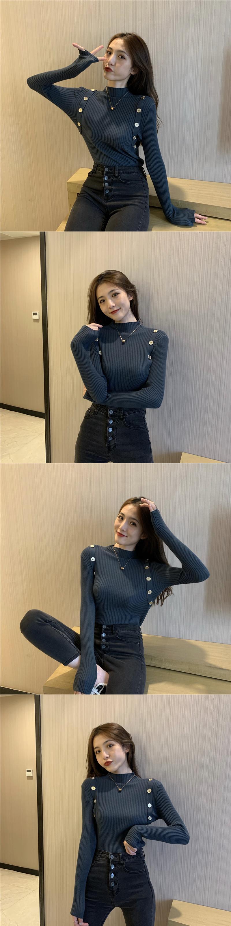 カラーゆったりシャツ スプリングセーター スリム薄手長袖スリーブニット ロング 春物 Marchs44634975803