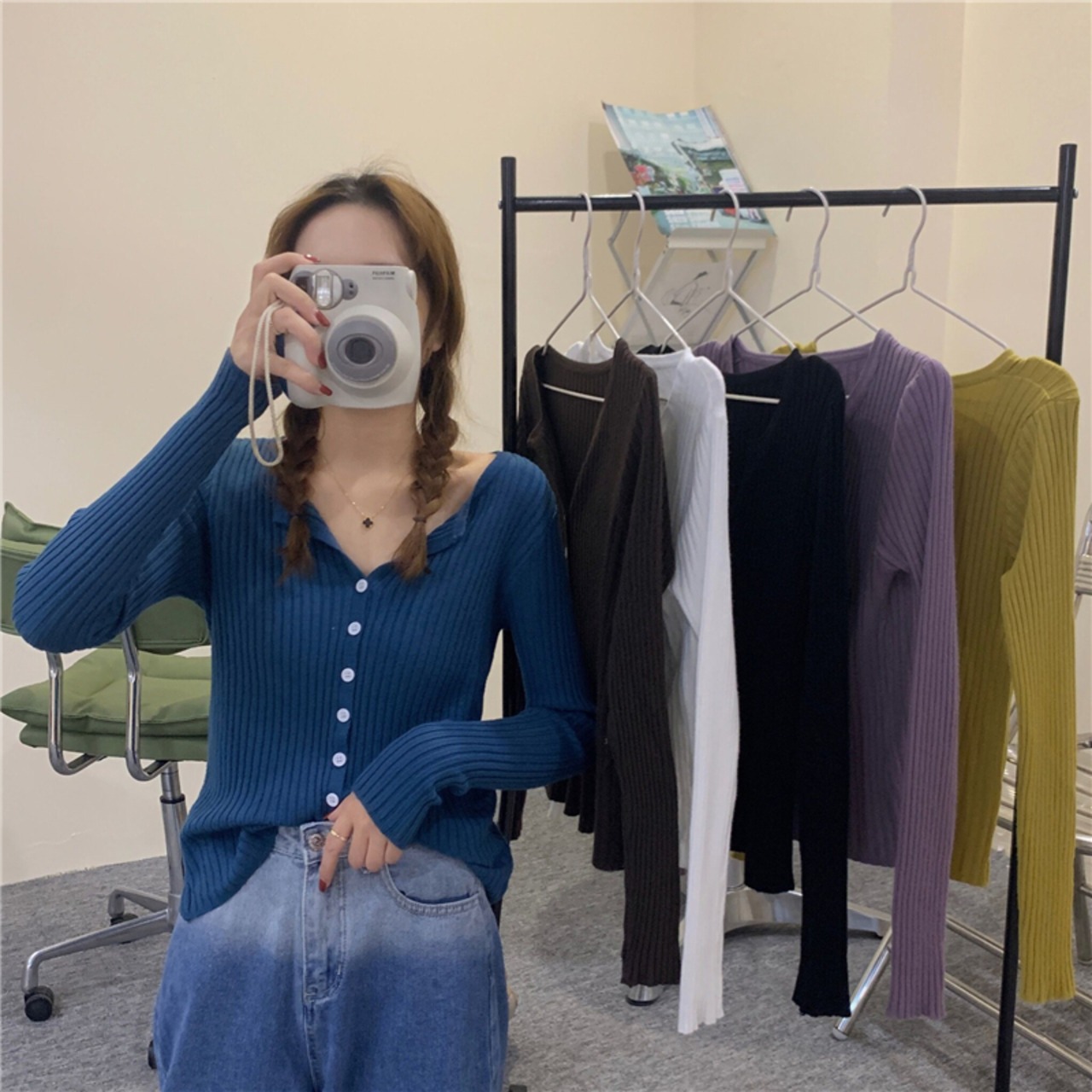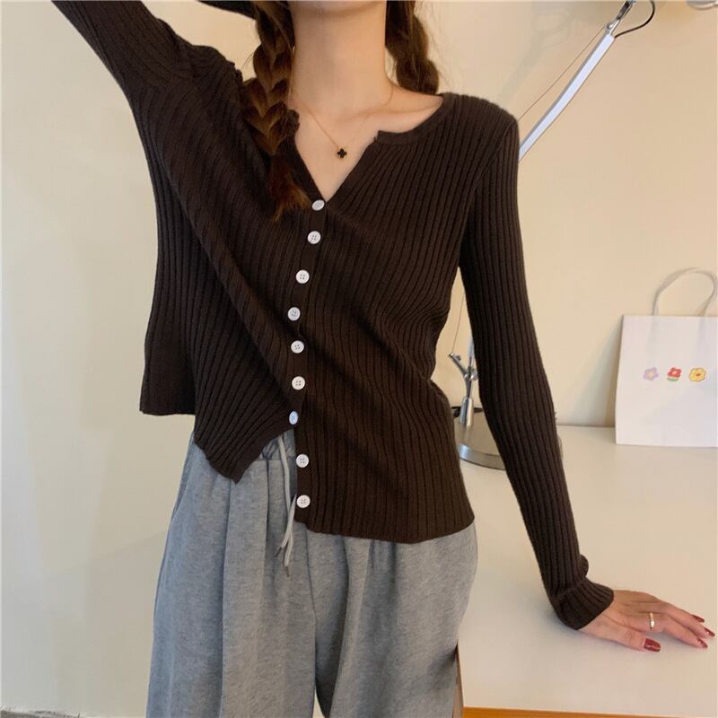 スプリング秋物VネックTシャツシャツ ニットカーディガンジャケット スリムトップス ロング 春物 オータム 長袖 Marchs96231109810