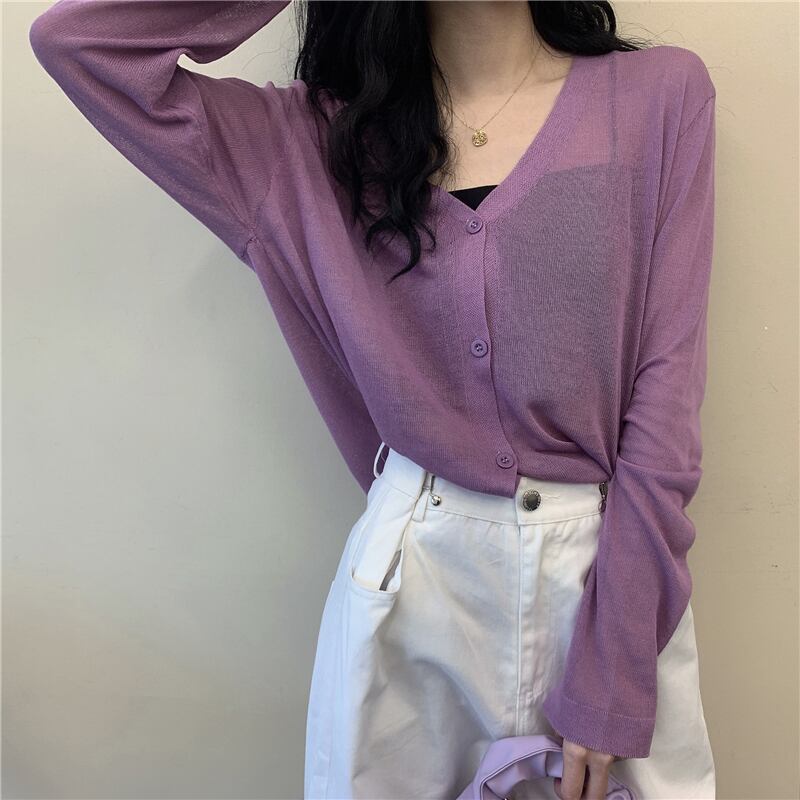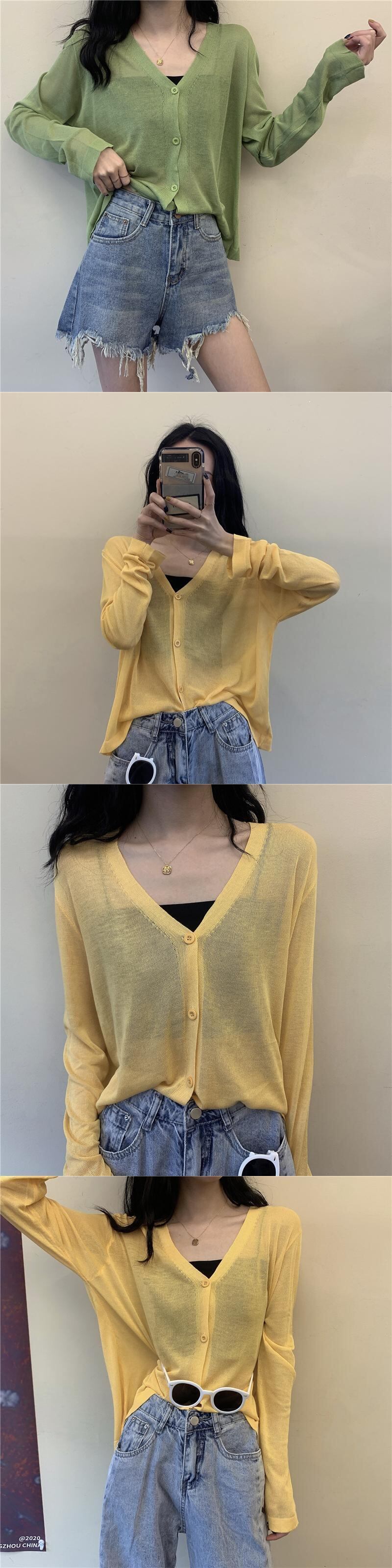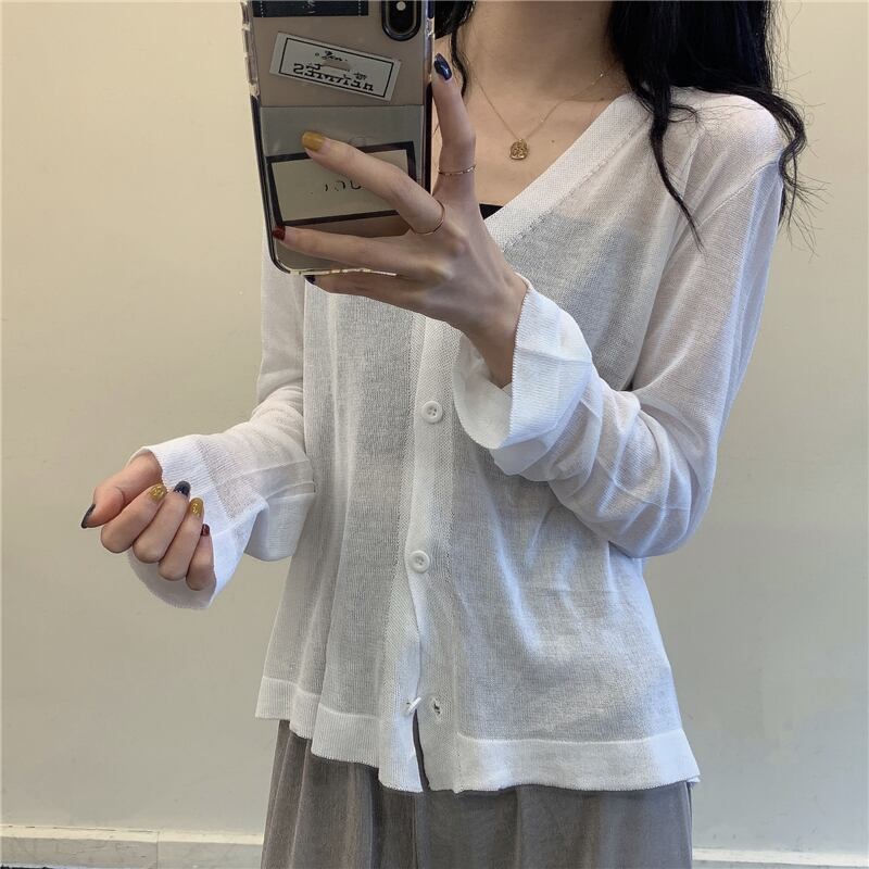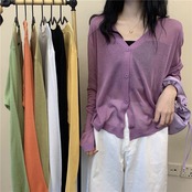 薄手Vネックニットカーディガンスプリング夏服ルーズシャツ ジャケット 春物 夏物 シルク Marchs84227228017