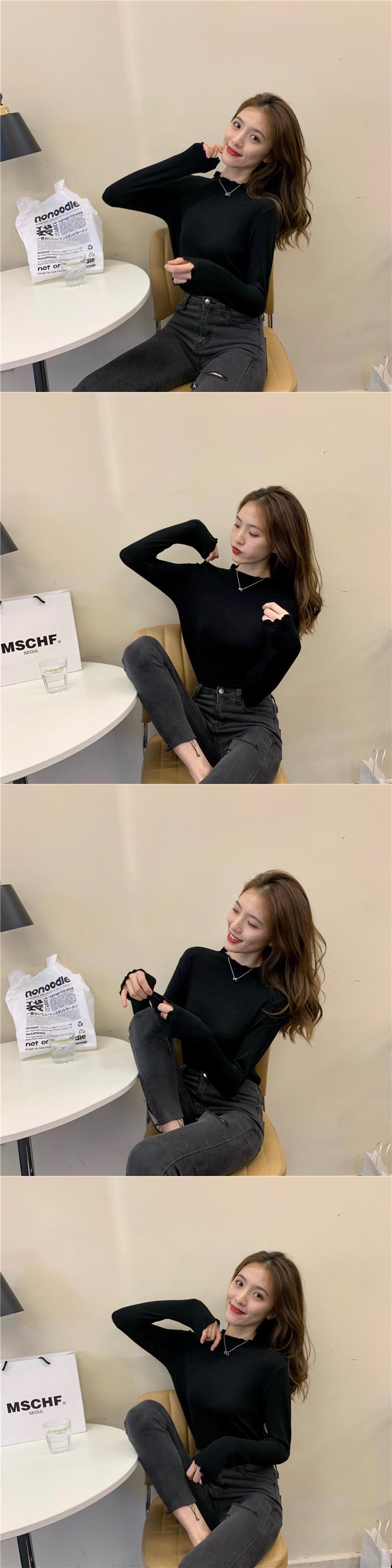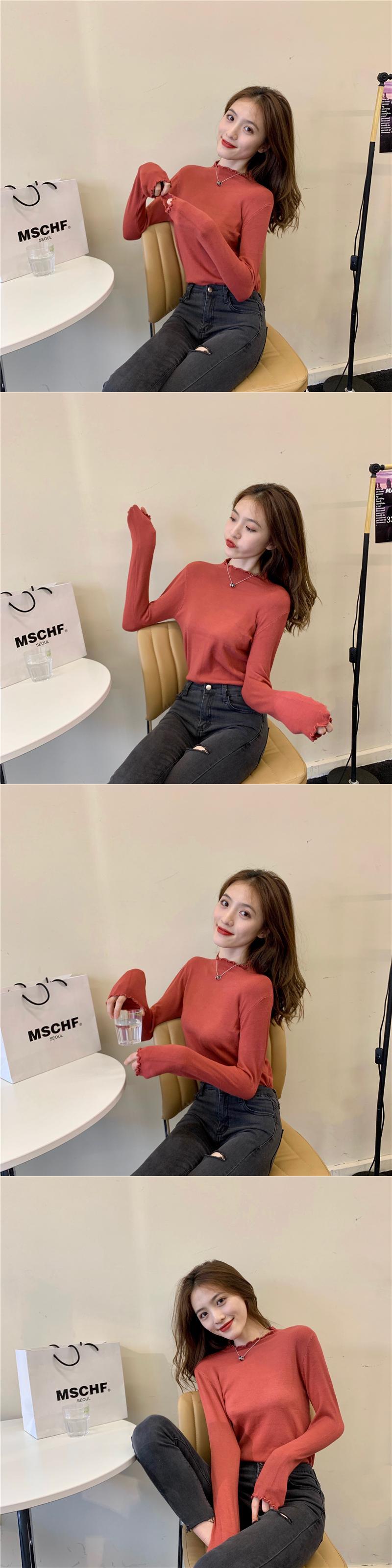 スプリングスタイルニットゆったりシャツ スリムトップス 長袖スリーブTシャツ ロング 春物 Marchs4931830649