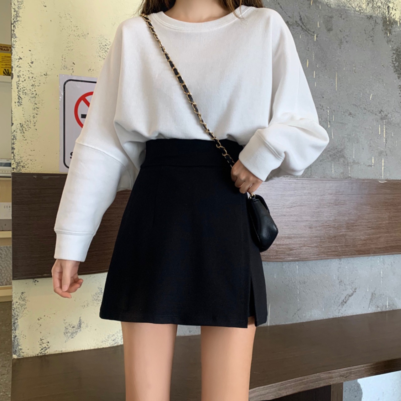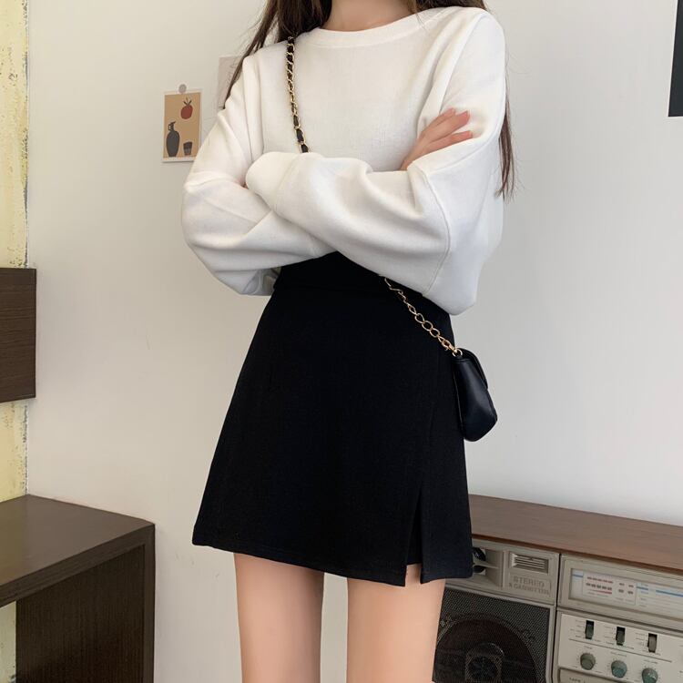 Aラインスカート ウィンターセーター スリムハイウェストウェストショートレディーススプリング秋物ブラック 春物 オータム 冬物 ウエスト Marchs54213016389