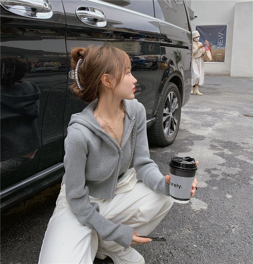 ショートニットカーディガンスプリング秋物ダブルジッパーフードジャケット トップス ロング 春物 オータム 長袖 Marchs36351442908