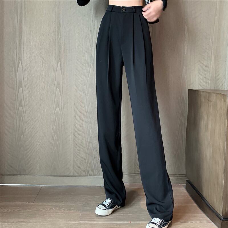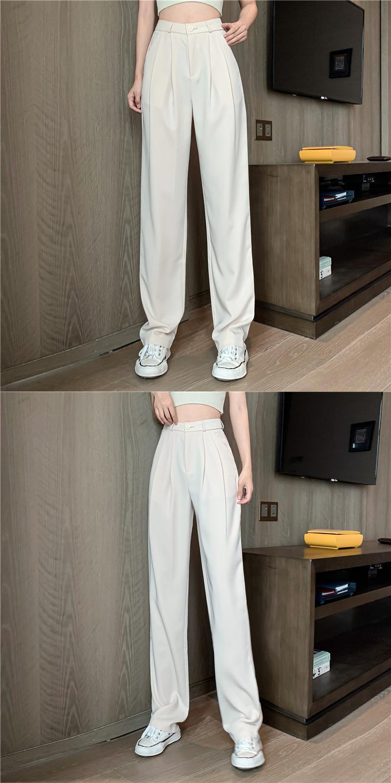 ホワイトカジュアルパンツ スプリング秋物薄手ハイウェストウェストルーズワイドレッグ 春物 オータム ワイドパンツ ウエスト Marchs53026404842