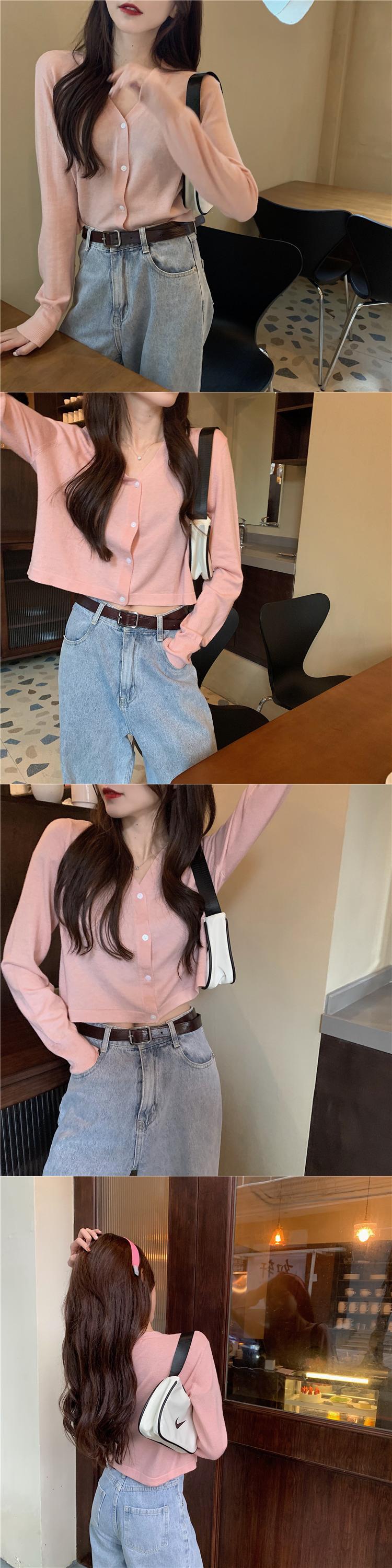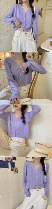 スプリングスタイルVネックカーディガン薄手ニットショートトップス レディース ロング 春物 シルク パープル 長袖 Marchs24871496126