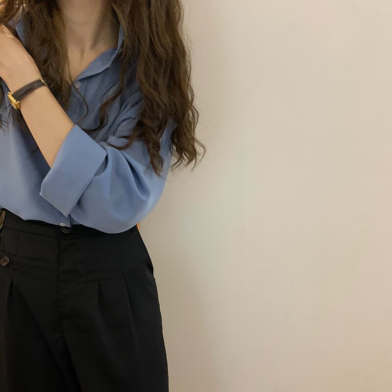 スタンダードブルーシャツ レディーススプリング ロング レトロ 春物 長袖 Marchs85206841238